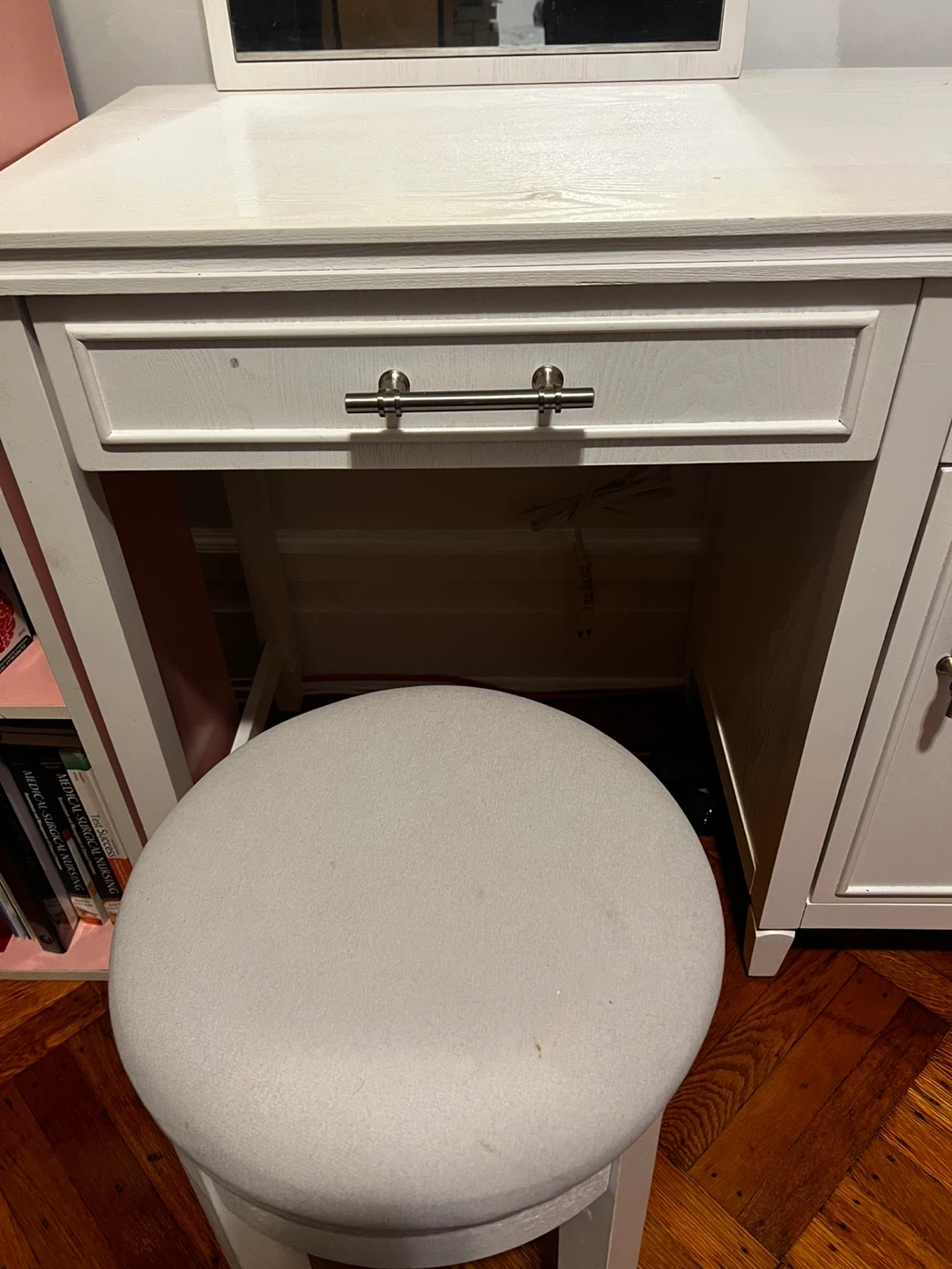 Used Mirror desk cushioned stool set