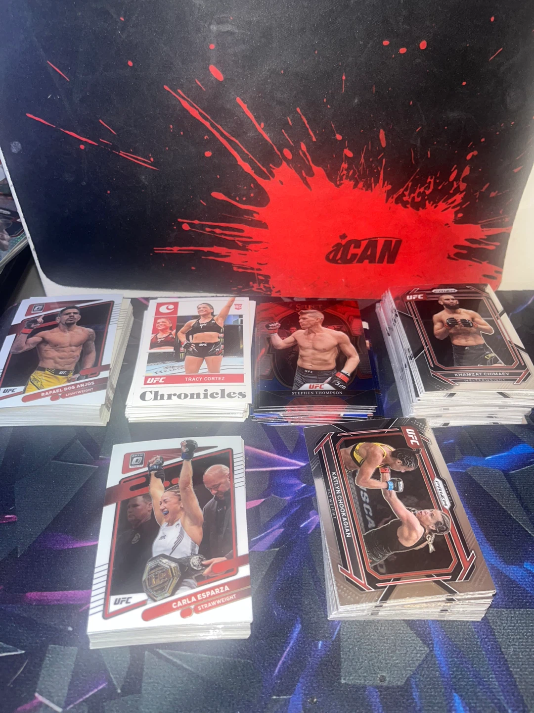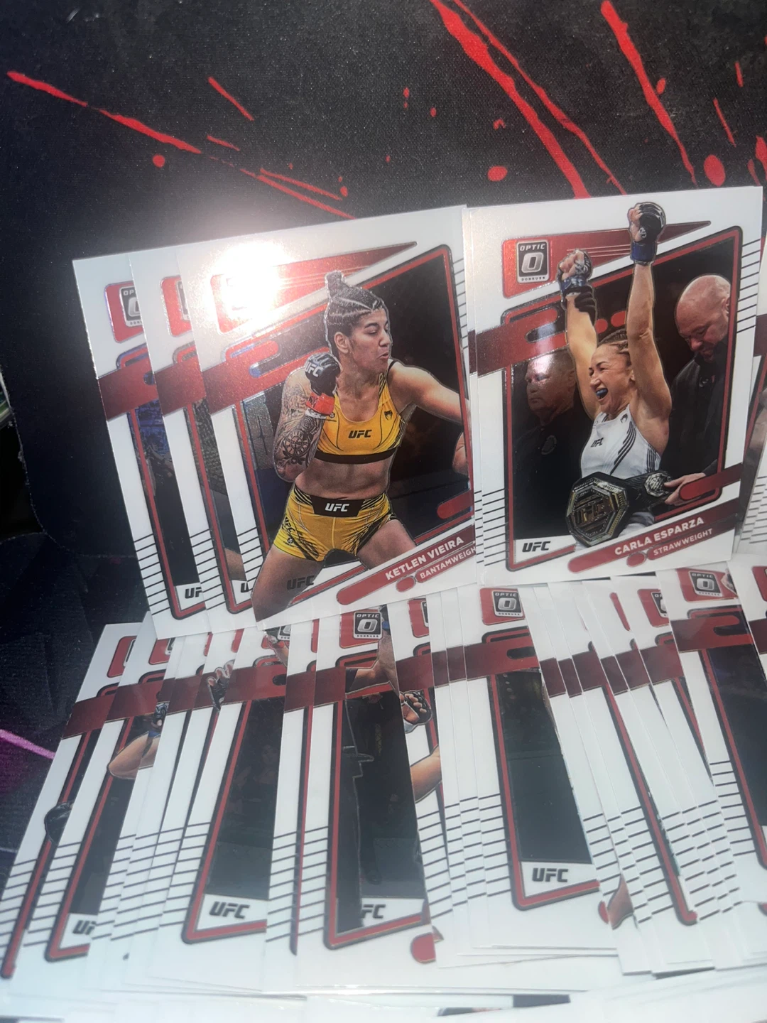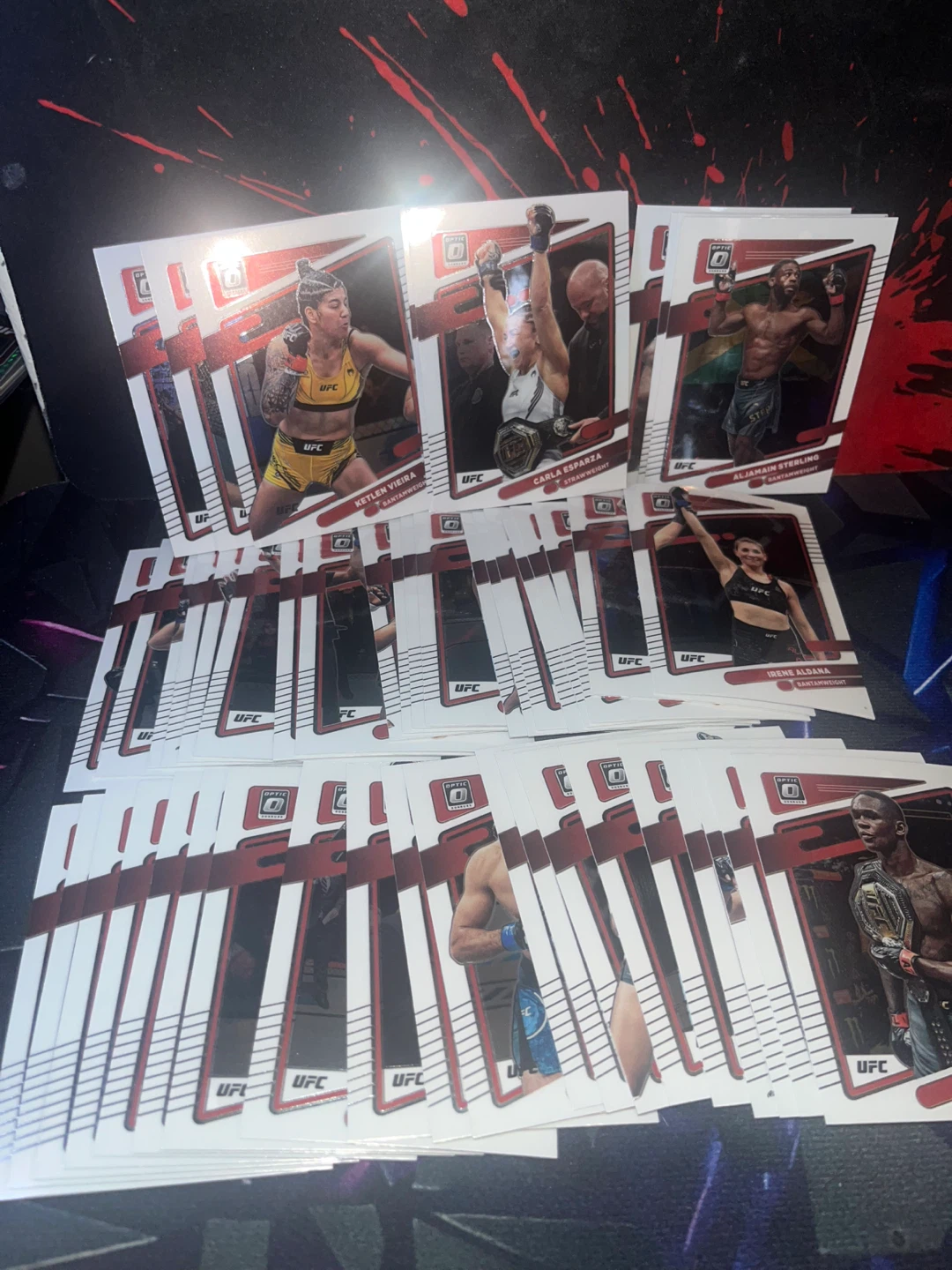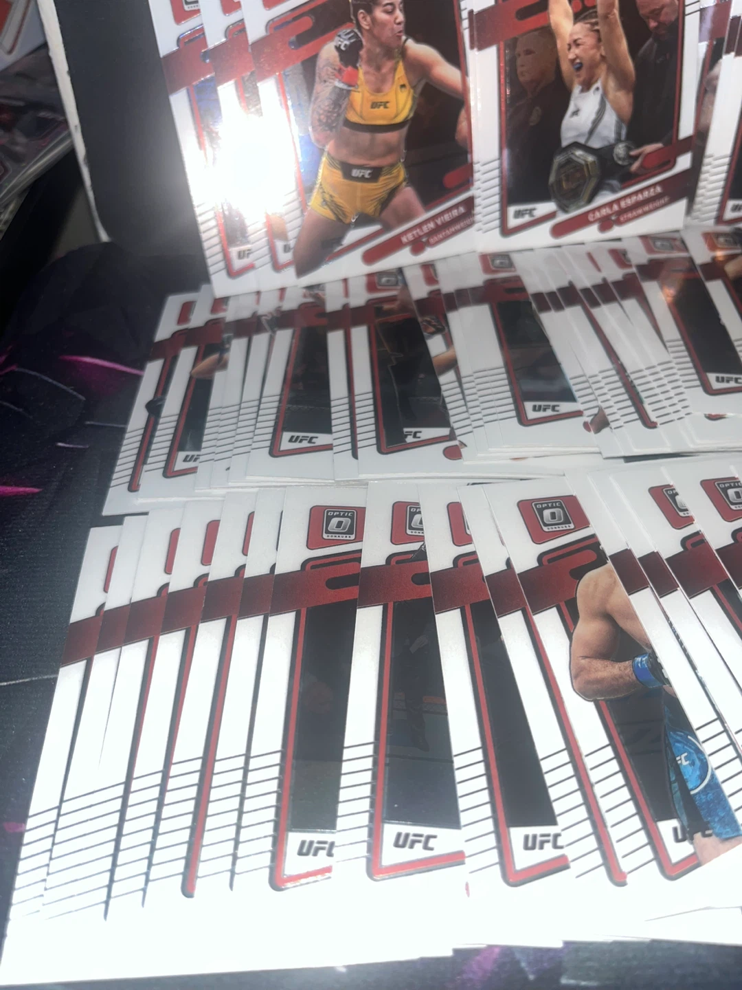 A collection of 2022-2023UFC Prizm trading cards featuring various fighters. These cards are from the Prizm series and showcase different UFC athletes. Great for any UFC fan or collector!