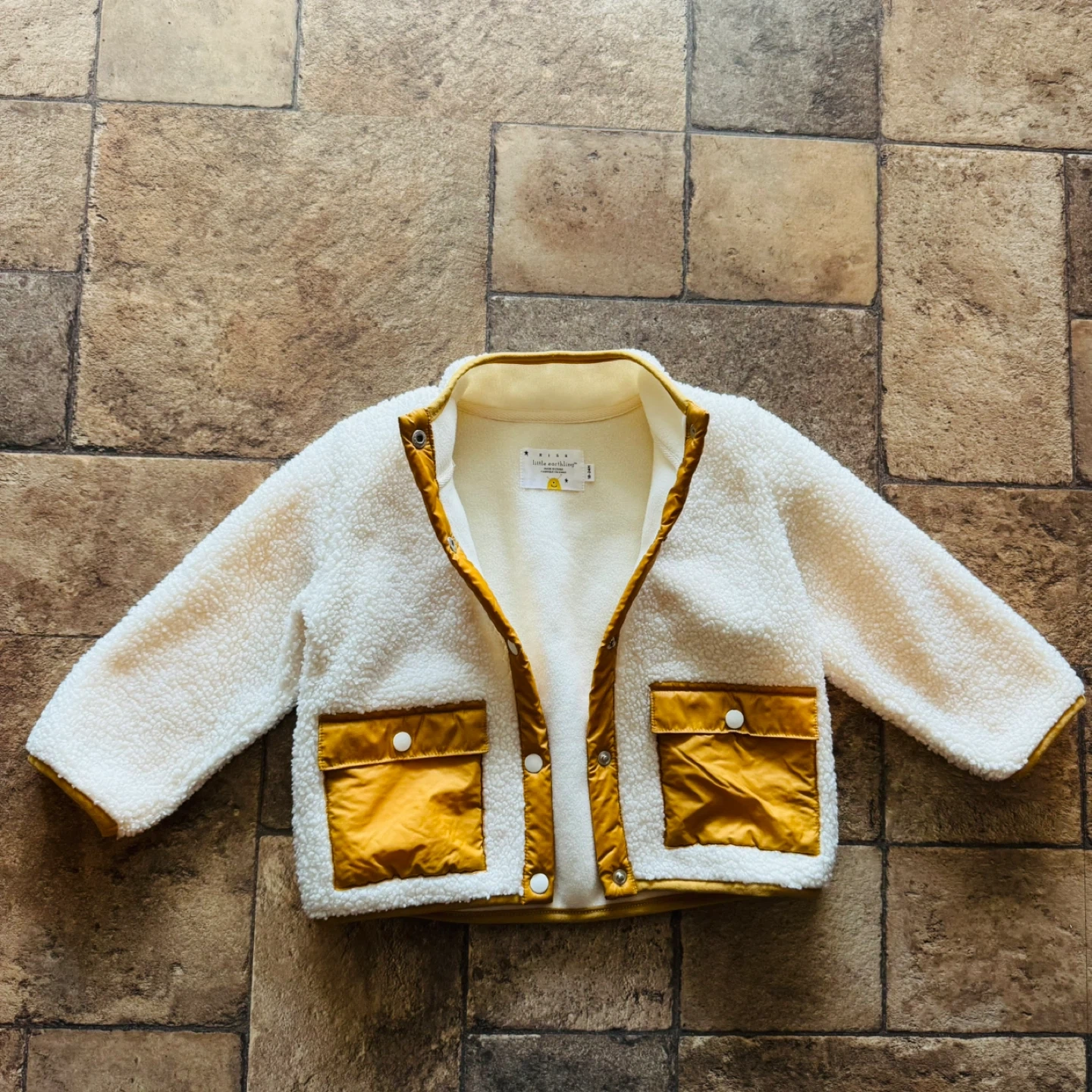 This Rise Little Earthling fleece jacket is in excellent condition. It's sized for 18-24 month olds and features a soft, cozy fleece material with cute pocket details.