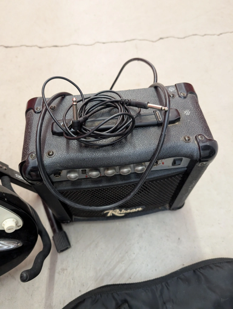 Selling a Risson guitar and amplifier in black. It's in good condition and ready to use. Perfect for practice or small gigs! Comes with a cable, stand and bag for guitar. pickup available on Saturday only