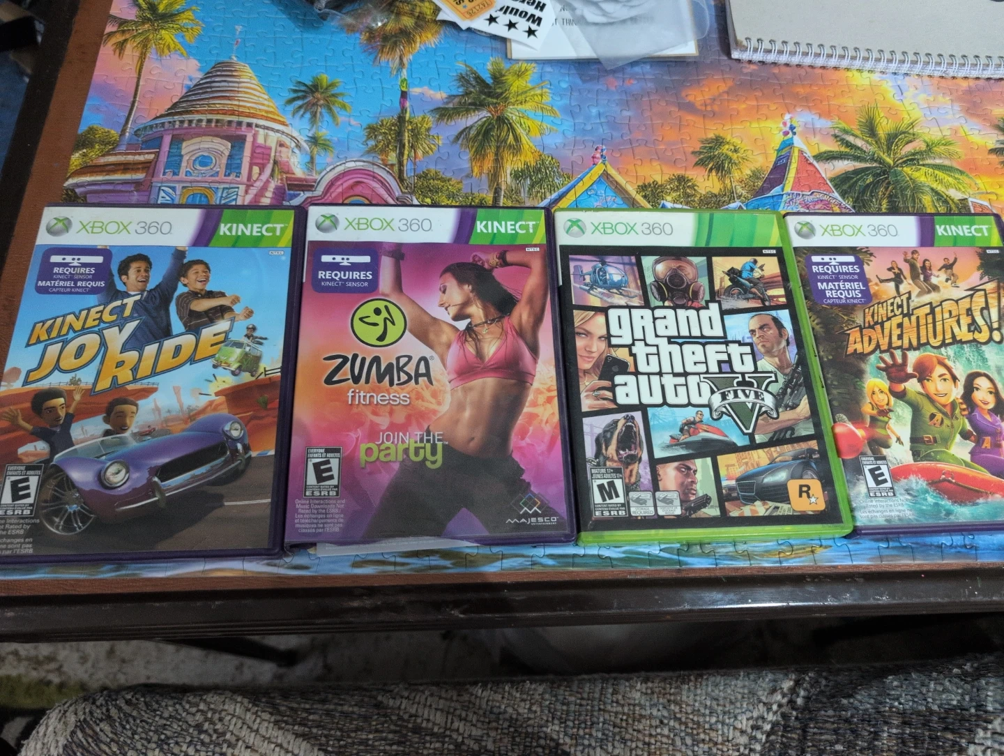 Selling a few Xbox 360 games that are compatible with the Kinect sensor! Includes Kinect Joy Ride, Zumba Fitness, and Kinect Adventures. And Grand Theft Auto 5. $5 each game