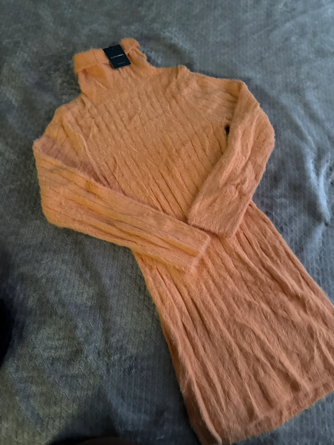 J Luxlabel Orange Fuzzy Turtleneck Sweater Dress