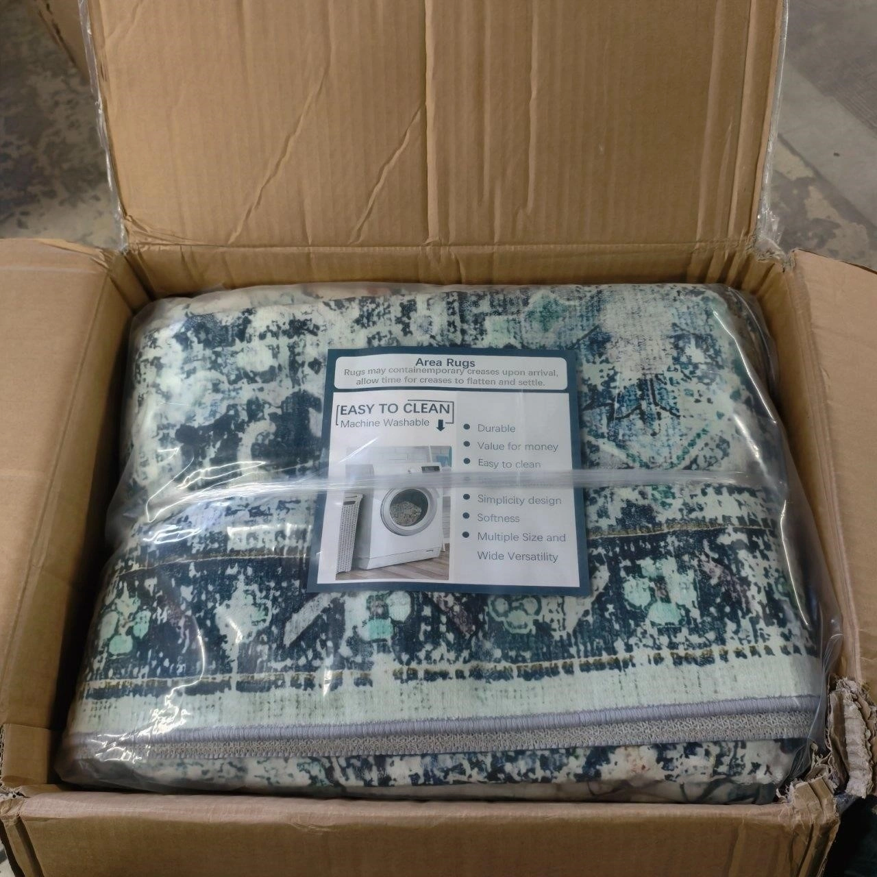 Selling Brand new beautiful area rug that's both durable and easy to clean! It's machine washable, so keeping it fresh is a breeze. The non-slip backing ensures it stays in place, and the sturdy edge adds to its longevity. Plus, it's designed with simplicity and wide versatility in mind