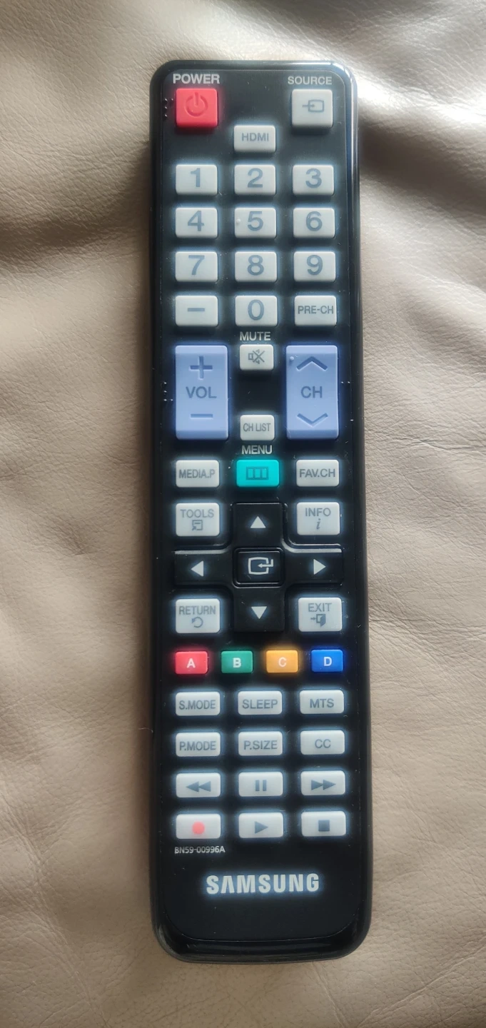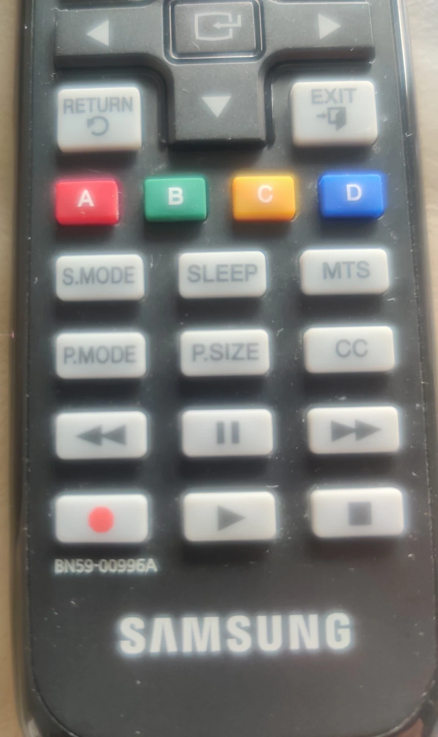 This is a Samsung TV remote. It has all the standard buttons for TV control, including navigation and playback. Great for replacing a lost or broken remote!