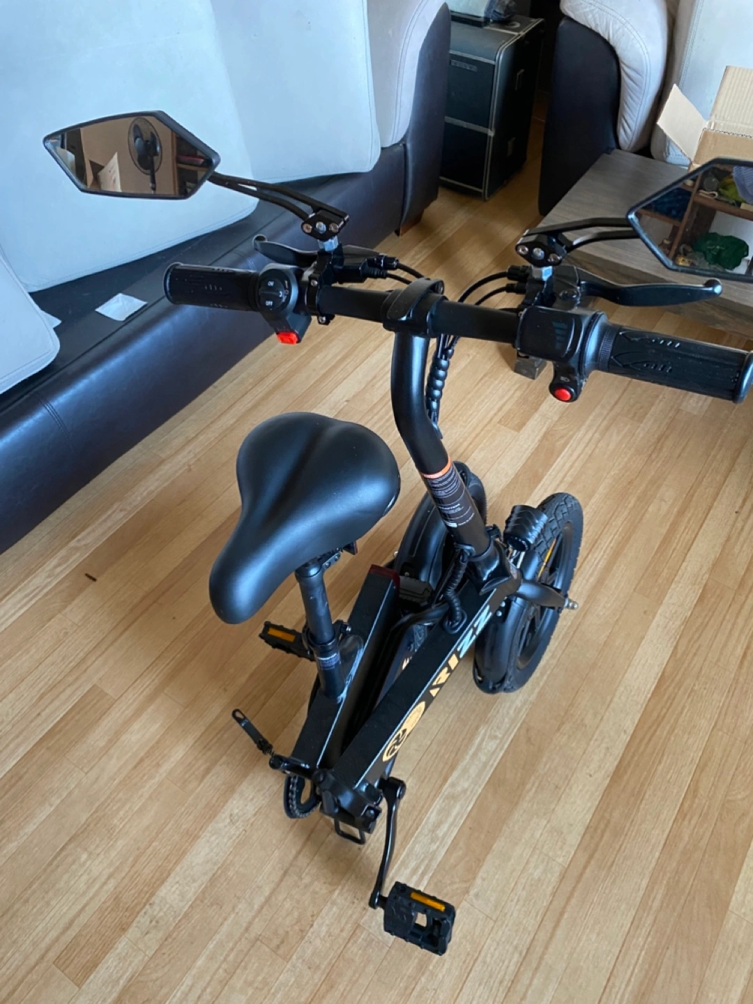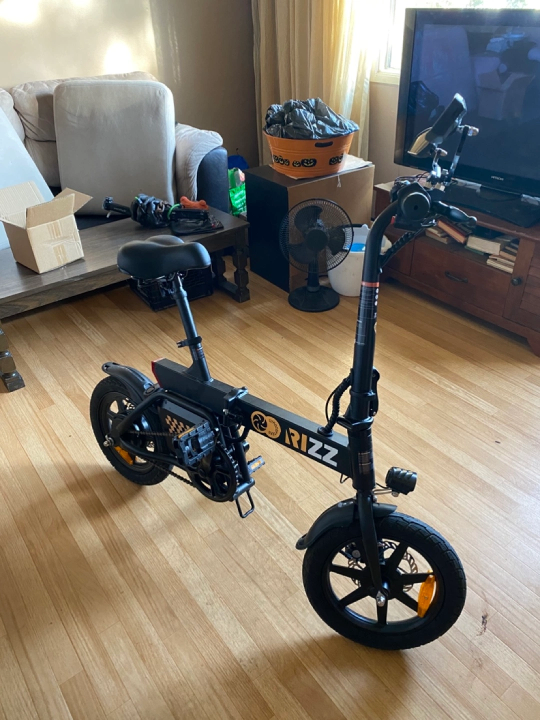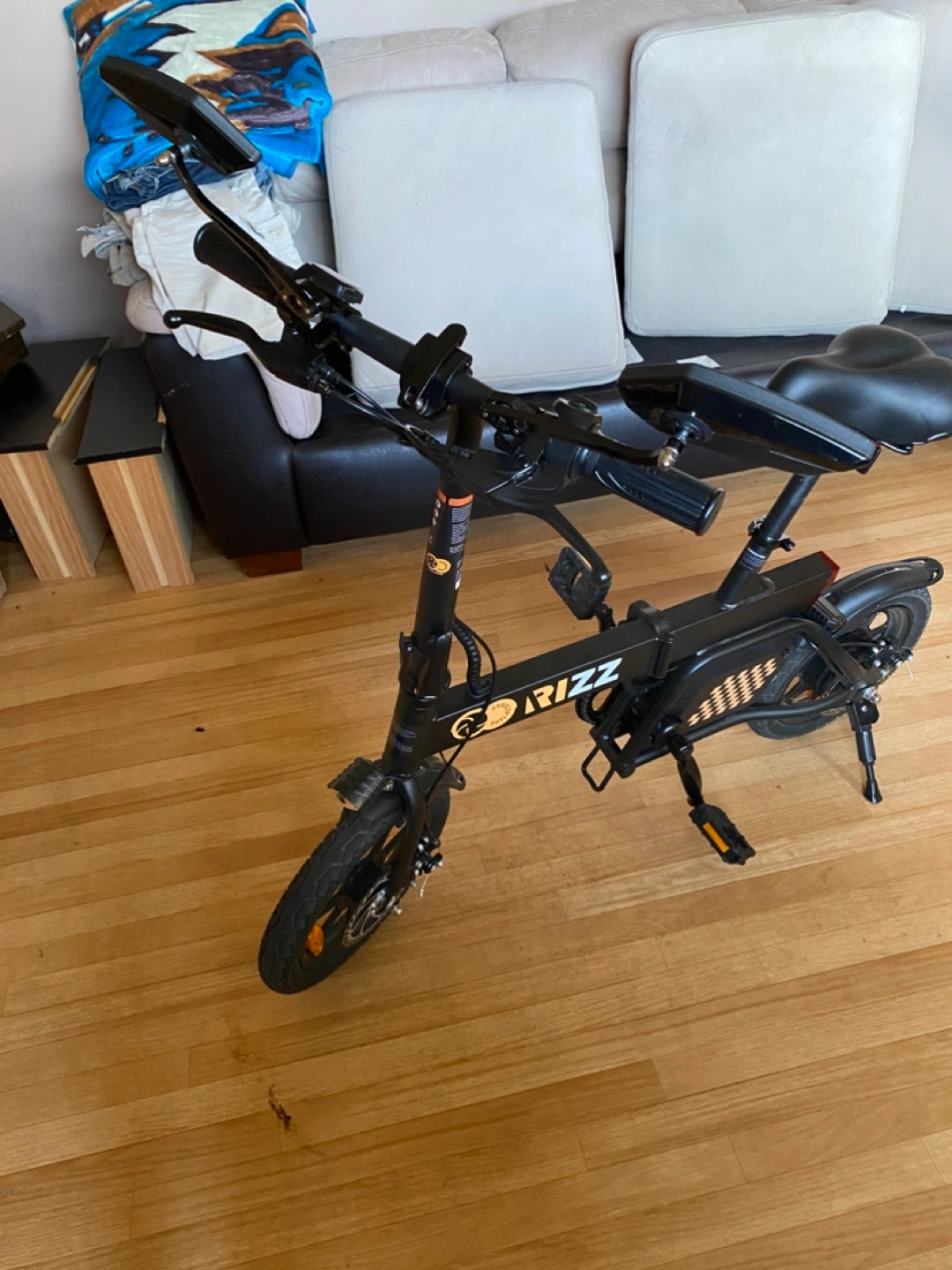 65Rizz folding e-bike with a 350 watt motor, digital power meter, disc brakes and cruise control. All manuals, charger and accessories included. Also included is a set of mirrors and alarm with key fob. Less than one hour’s use on the battery. $ 400.00 firm , cash only. Serious offers considered. Call 639-384-9931. Pick up only.