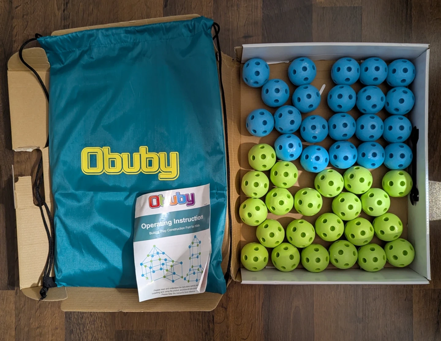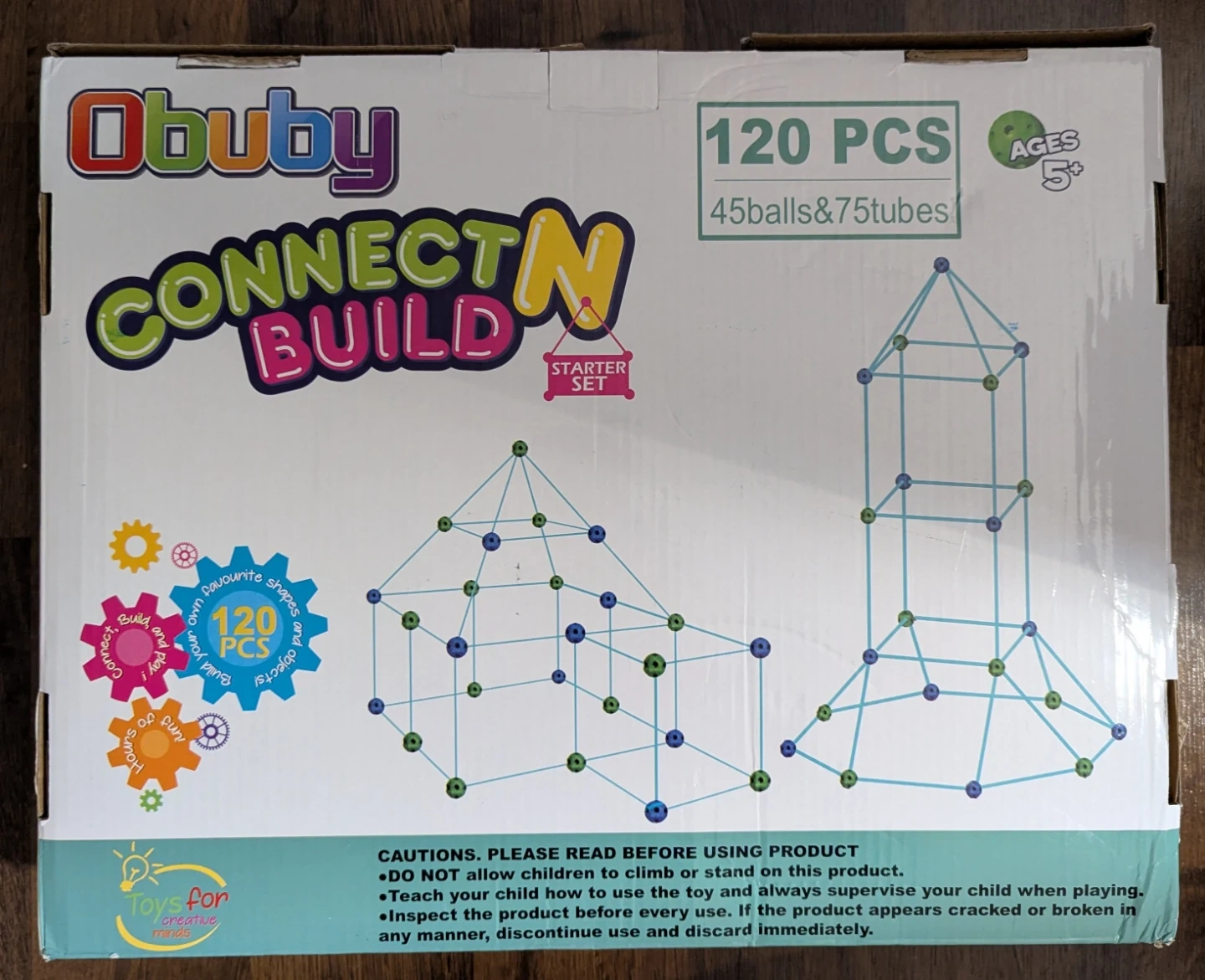 This Obuby Connect N Build kit comes with 120 pieces for building fun structures. It includes blue and green connectors along with tubes, plus a storage bag. The set is recommended for ages 5 and up.