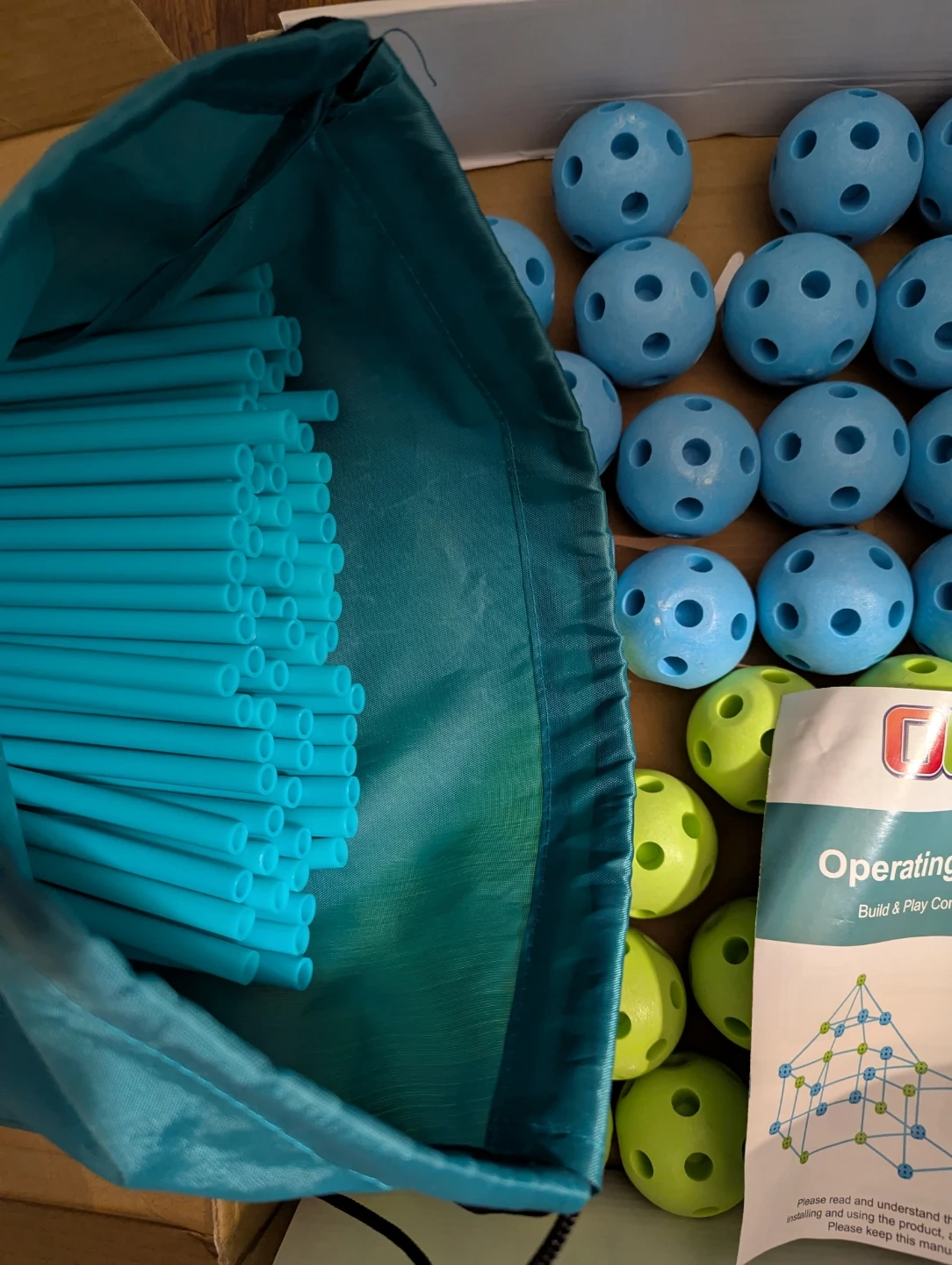It came with 22 green and 21 blue connectors (so 2 missing based on the box), but with 76 tubes (1 extra).