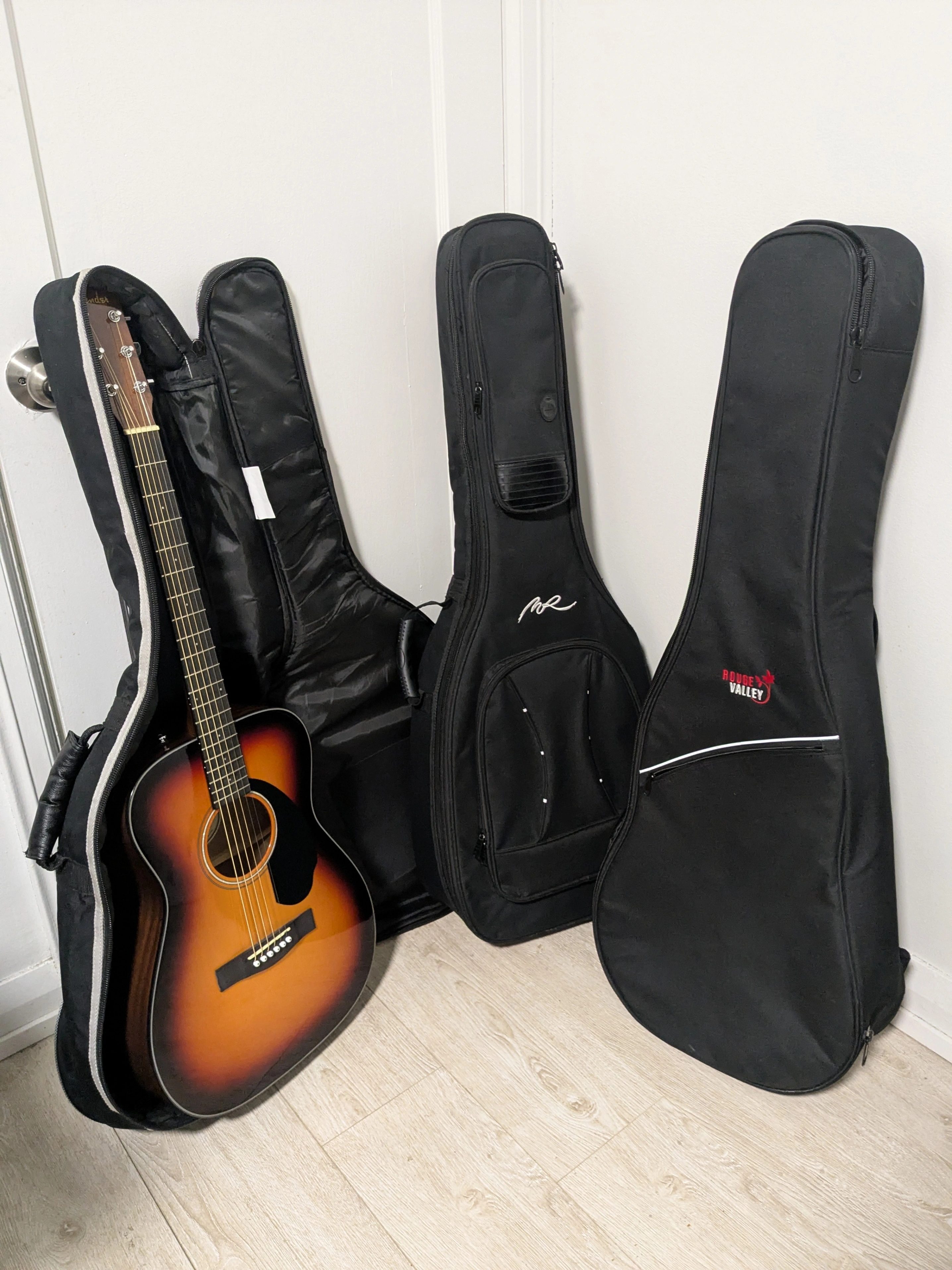 I have 3 beautiful gig bags for an affordable price. All can fit guitars up to 41" long and also thick enough for both electric and acoustic guitars.