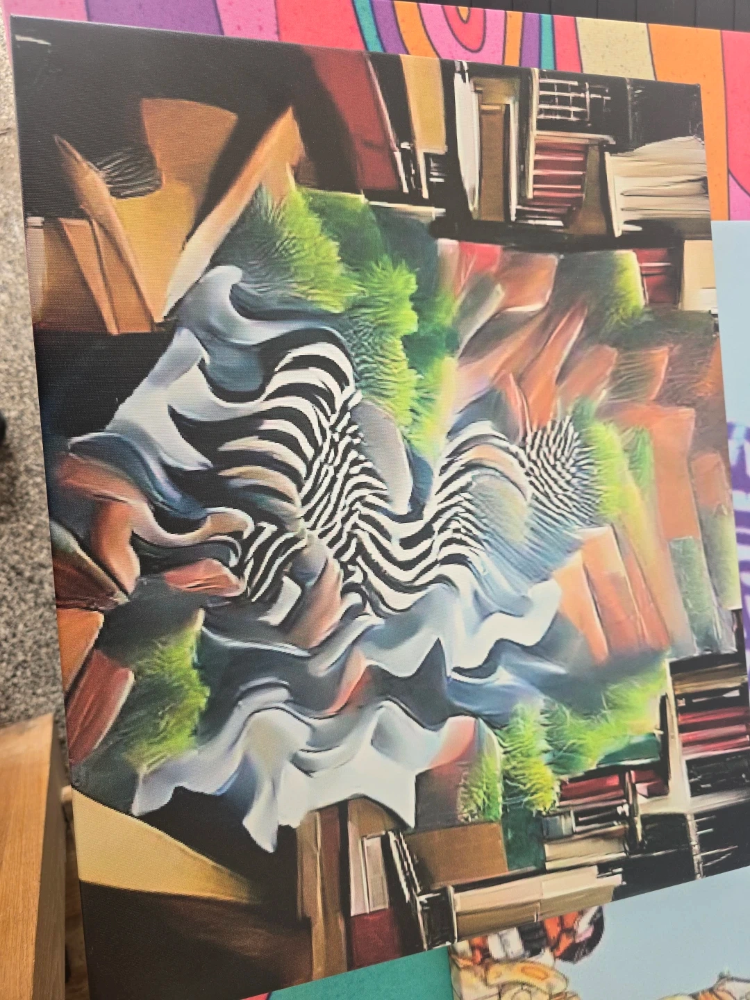 This canvas art print features an abstract design with a vibrant palette. It's a unique piece that'll add a pop of colour to any room. The print is on canvas, ready to hang.