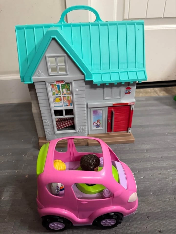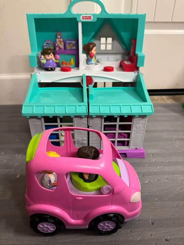 Includes house, car, and people figures. Furniture is included but is not Little People brand. The house and car play sounds.