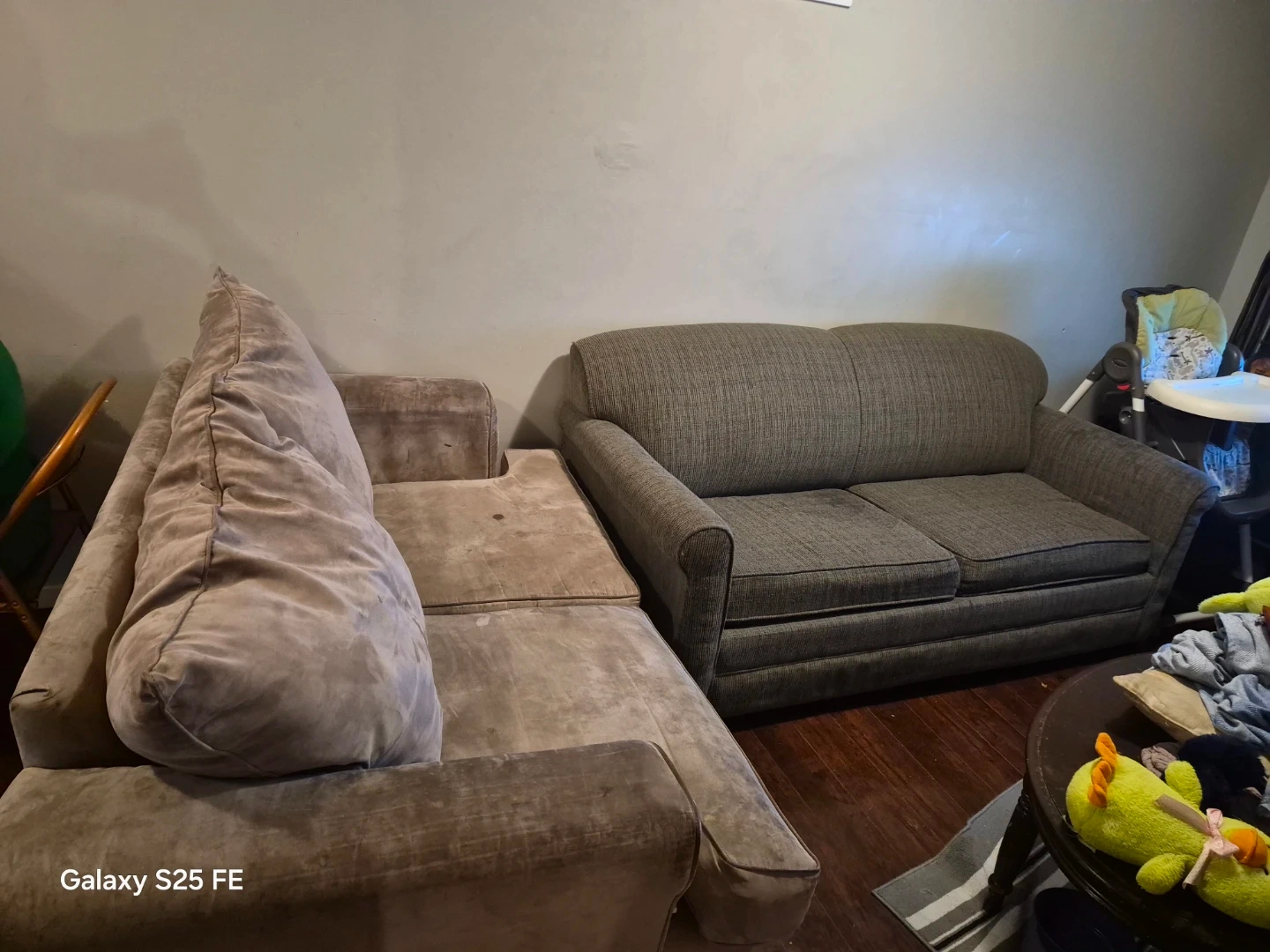 Free used sofa set in good condition. It's a comfortable set that would be great for a living room or den. There are some signs of wear, but overall it's still in nice shape and ready to be enjoyed!