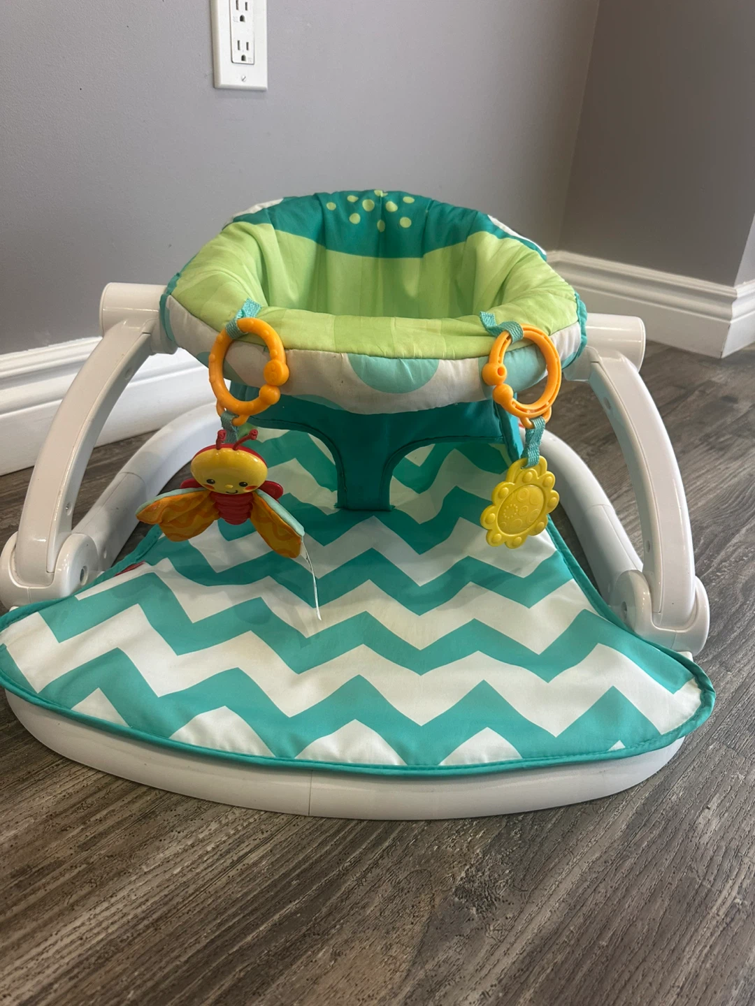 Selling a Fisher-Price Sit-Me-Up Floor Seat! It's great for supporting little ones as they learn to sit. It has a comfy fabric seat and a wide, sturdy base. Plus, it comes with cute, colourful toys to keep baby entertained. It is foldable for easy storage too!