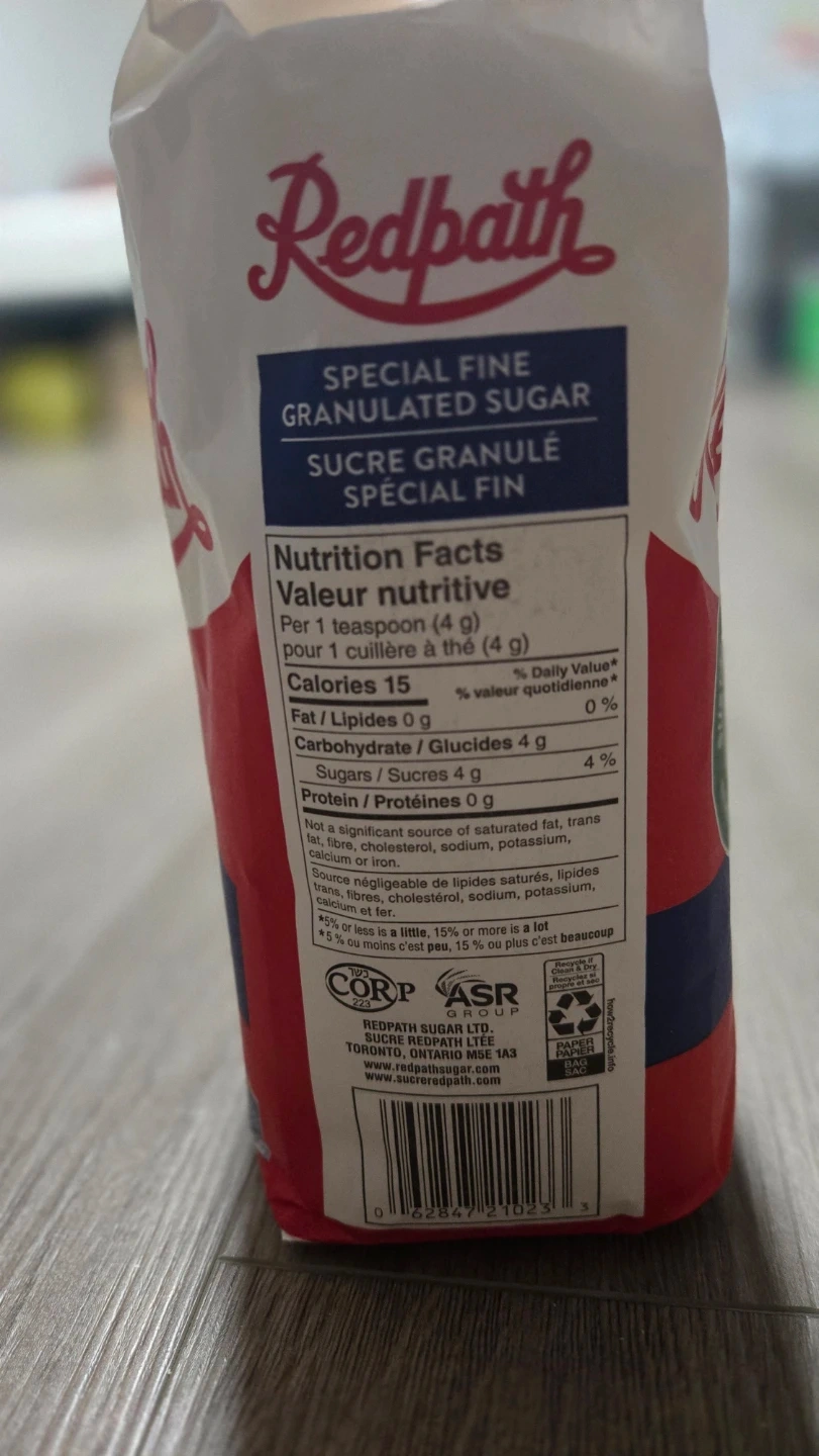 Buy & SellRedpath Special Fine Granulated Sugar - 2 kgRedpath Special Fine Granulated Sugar - 2 kg$2This is a 2 kg bag of Redpath Special Fine Granulated Sugar. It's pure cane sugar. It's great for all your baking needs!WHERE TO MEETCheck LocationView MapSELLERverifiedRamanTrinity Bellwoods1235 reviews0 chats·0 favorites·8 viewsSEND CHAT TO SELLERHi Raman! I’m interested in your listing.Hi Raman! I’m interested in your listing.Get the Karrot app to chatSign In to chat