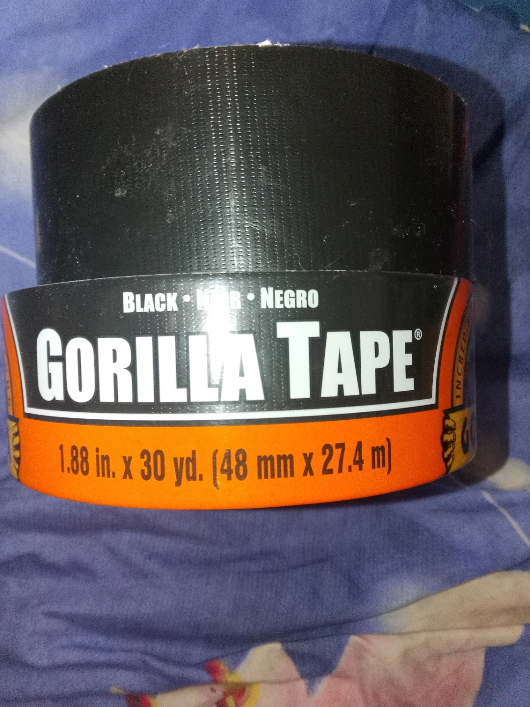 This is a roll of black Gorilla Tape. It measures 1.88 inches wide by 30 yards long (48 mm x 27.4 m). This tape is known for its strength and durability!
