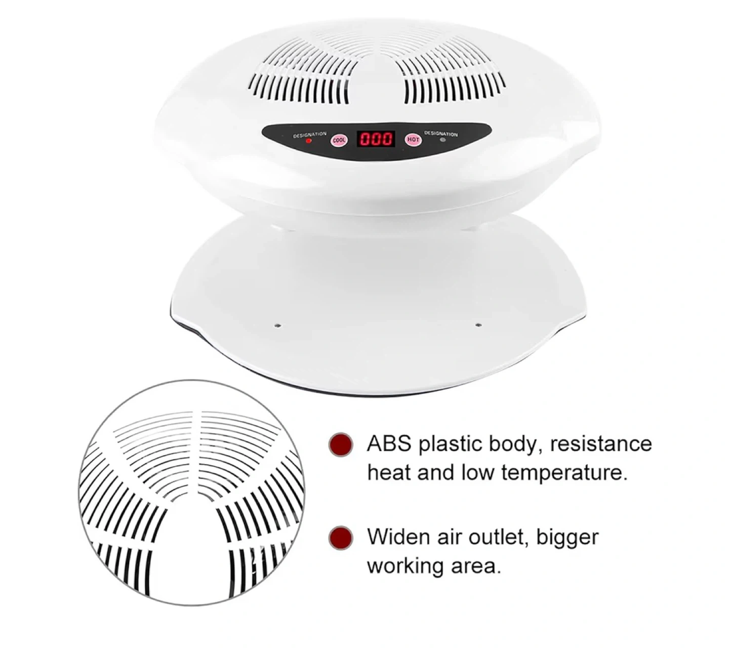 This 400W nail dryer features adjustable wind modes, offering both hot and cold air. It has an ABS plastic body and a widen air outlet for a bigger working area. The intelligent sensor design makes it convenient to use.
