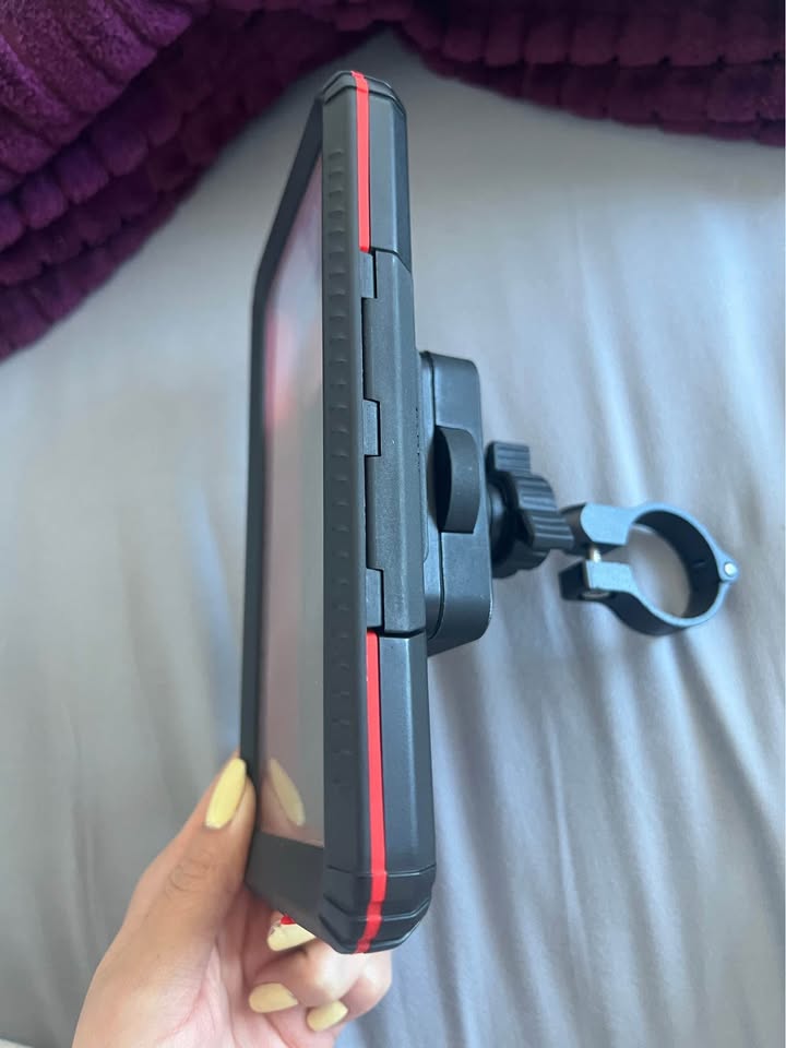 8 mm four-sided hardened steel links wrapped in a weatherproof nylon sleeve. 1.2 m length secures both frame and wheels wherever you stop. IPX6-rated case fits 4–7″ devices and installs in seconds. Shock-absorbing design and 360° rotation keep your screen visible and protected over bumps.