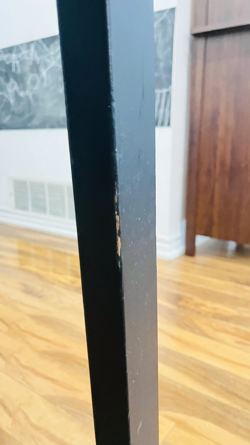 Round dining height table from ikea. Bought in 2018, ready for new home. Pick up assembled as is. Table legs have some area with paint off as shown in pictures.