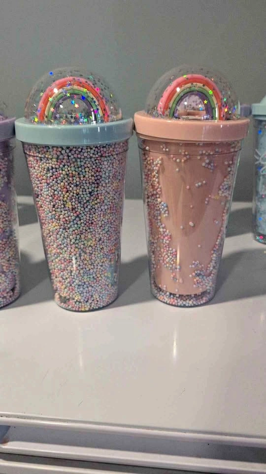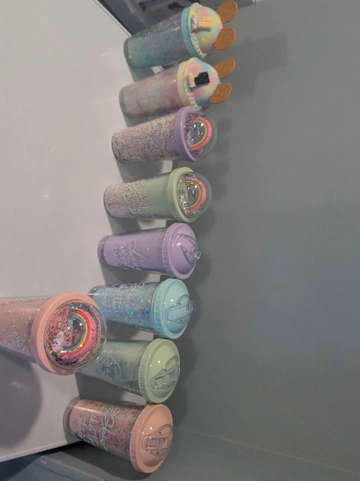 β’ Designs include rainbows, whipped cream tops, glitter, and candy-style lids