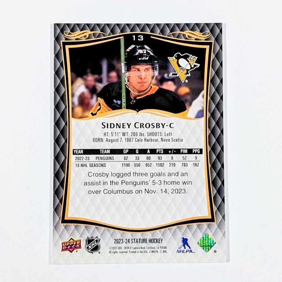 2024/25 Upper Deck Stature Hockey Sidney Crosby #13