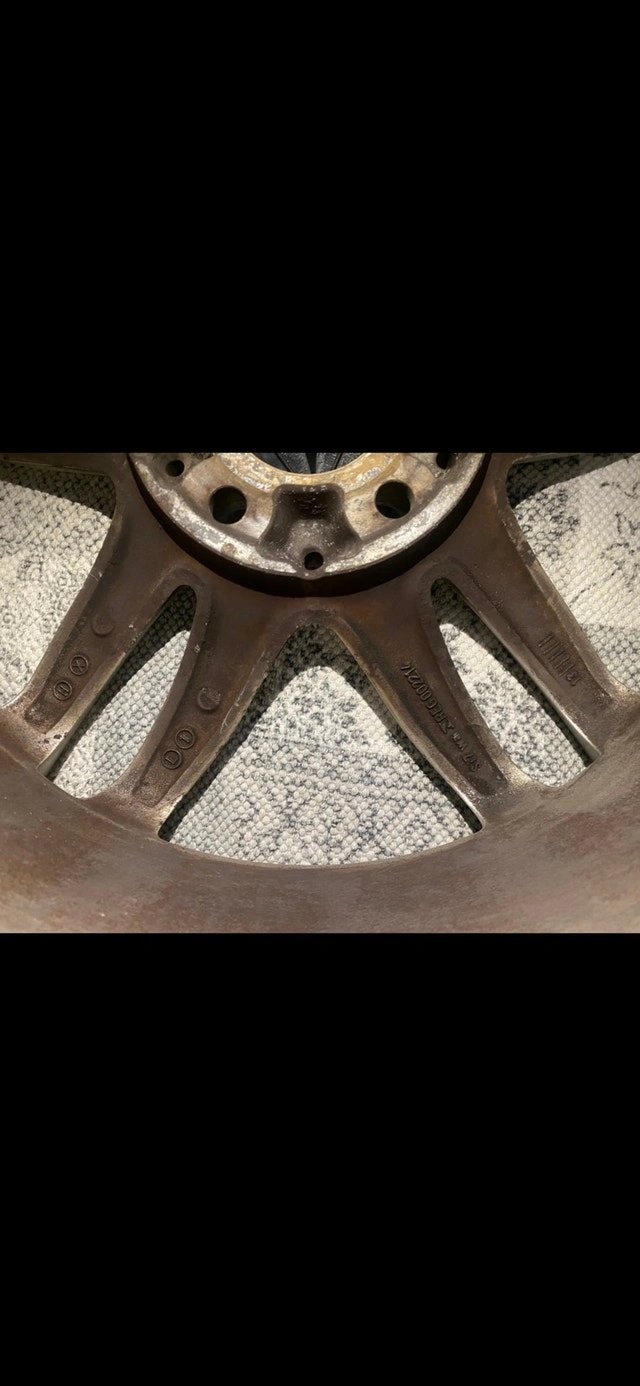 I'm selling a set of four used Mercedes rims, each measuring 17 inches in diameter, as indicated by the measuring tape in the pictures. These rims have the distinctive Mercedes-Benz logo at the center and are designed with a stylish multi-spoke pattern.