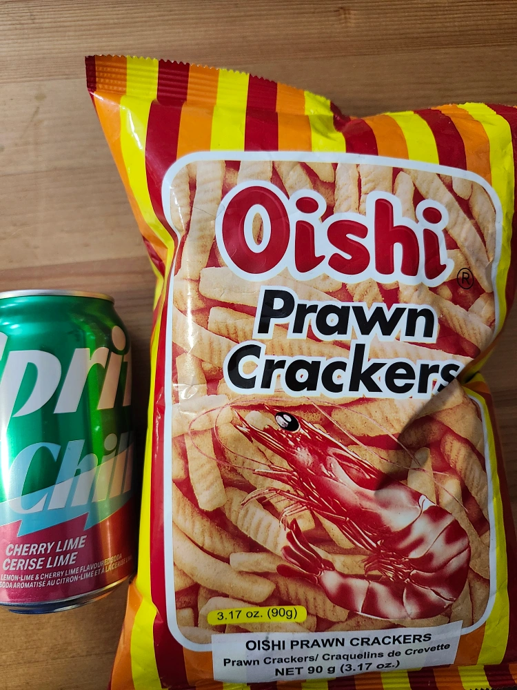 Free a bag of Oishi Prawn Crackers! These are the 90g bags, perfect for a snack. The expiry date is October 04, 2025, so they're nice and fresh! sprite cherry lime (1 can)