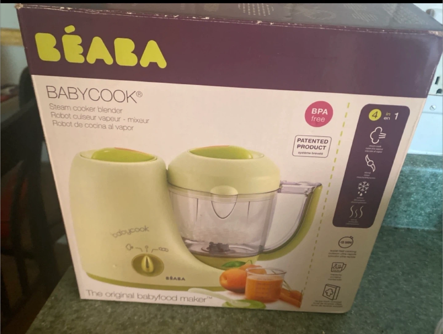 This is the original babyfood maker by BEABA. It steams, blends, defrosts, and reheats food. Includes the unit, steaming basket, lid, and spatula. It's BPA free and makes preparing homemade baby food simple!