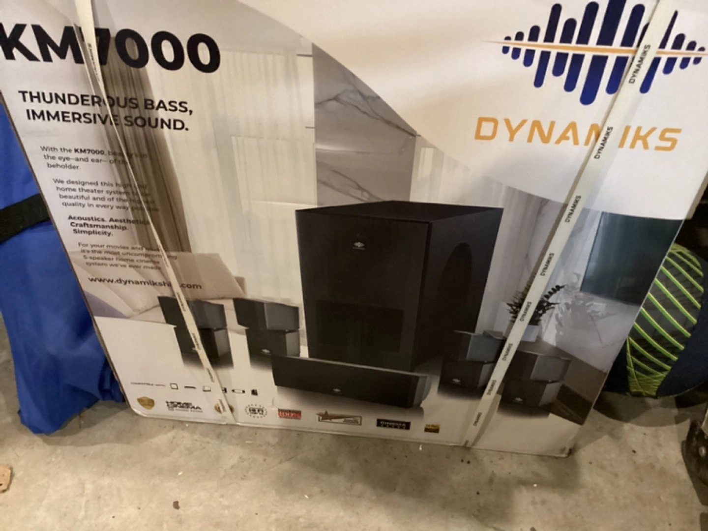 5.1 home theatre system. Includes subwoofer and five speakers. Thunderous bass, immersive sound. High-quality home cinema system.