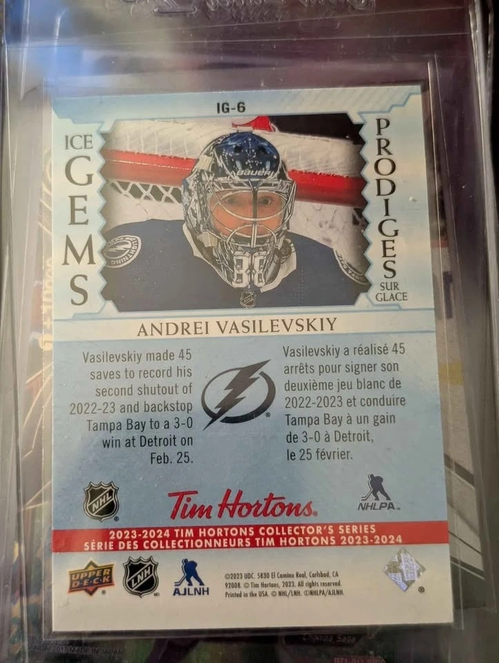 Buy & SellAndrei Vasilevskiy 2023-24 UD Tim Hortons Hockey Ice Gems IG-6 CAndrei Vasilevskiy 2023-24 UD Tim Hortons Hockey Ice Gems IG-6 C$25Pickup only. Cash only.WHERE TO MEETCheck LocationView MapSELLERverifiedStephen carscaddenCentennial650 reviews0 chats·0 favorites·0 viewsSEND CHAT TO SELLERHi Stephen carscadden! I’m interested in your listing.Hi Stephen carscadden! I’m interested in your listing.Get the Karrot app to chatSign In to chat