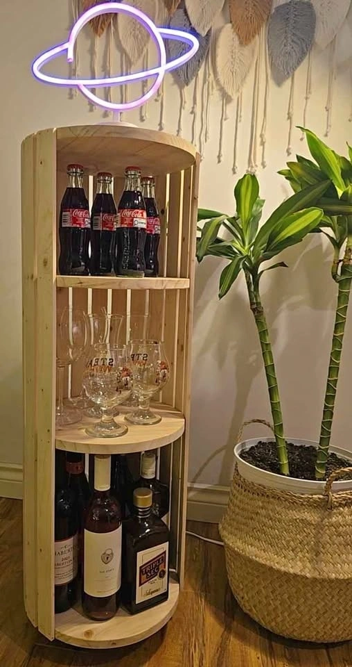 Looking for a stylish and functional storage piece? This handcrafted circular shelf is a one-of-a-kind creation, perfect for adding character to any space.