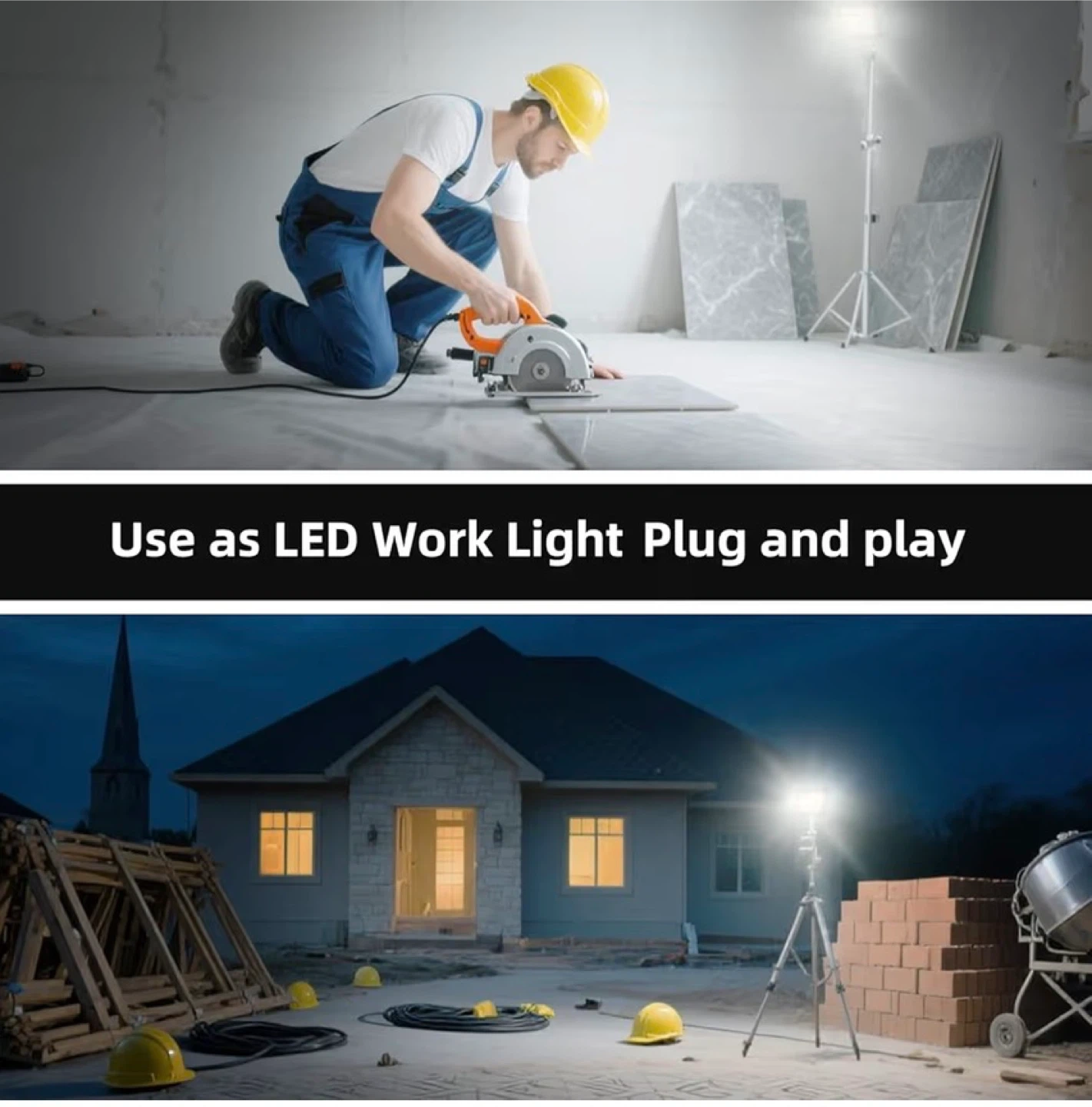 cool white brightness, ideal for stadiums, large warehouses, construction sites, and industrial yards.
