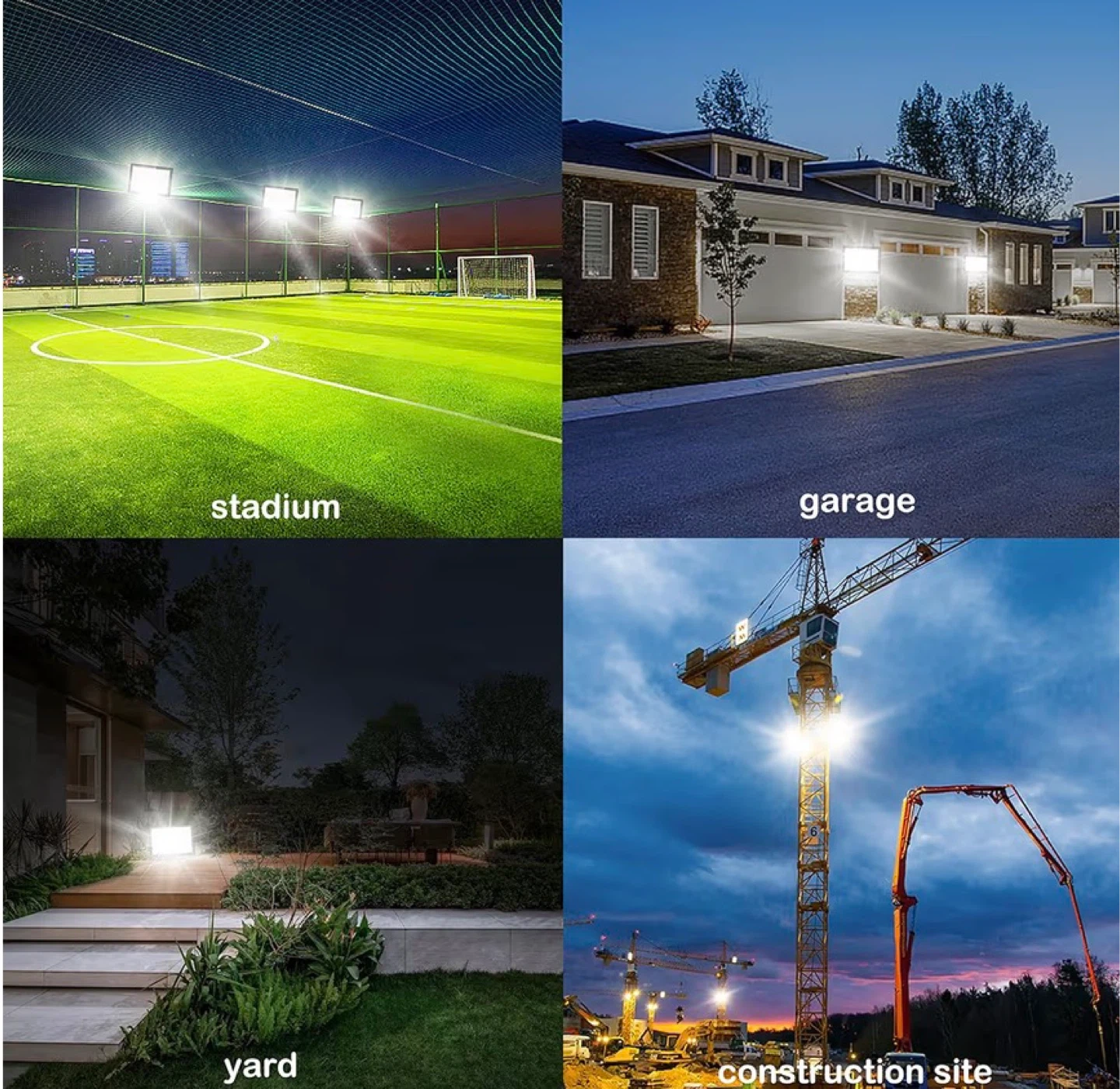 cool white brightness, ideal for stadiums, large warehouses, construction sites, and industrial yards.