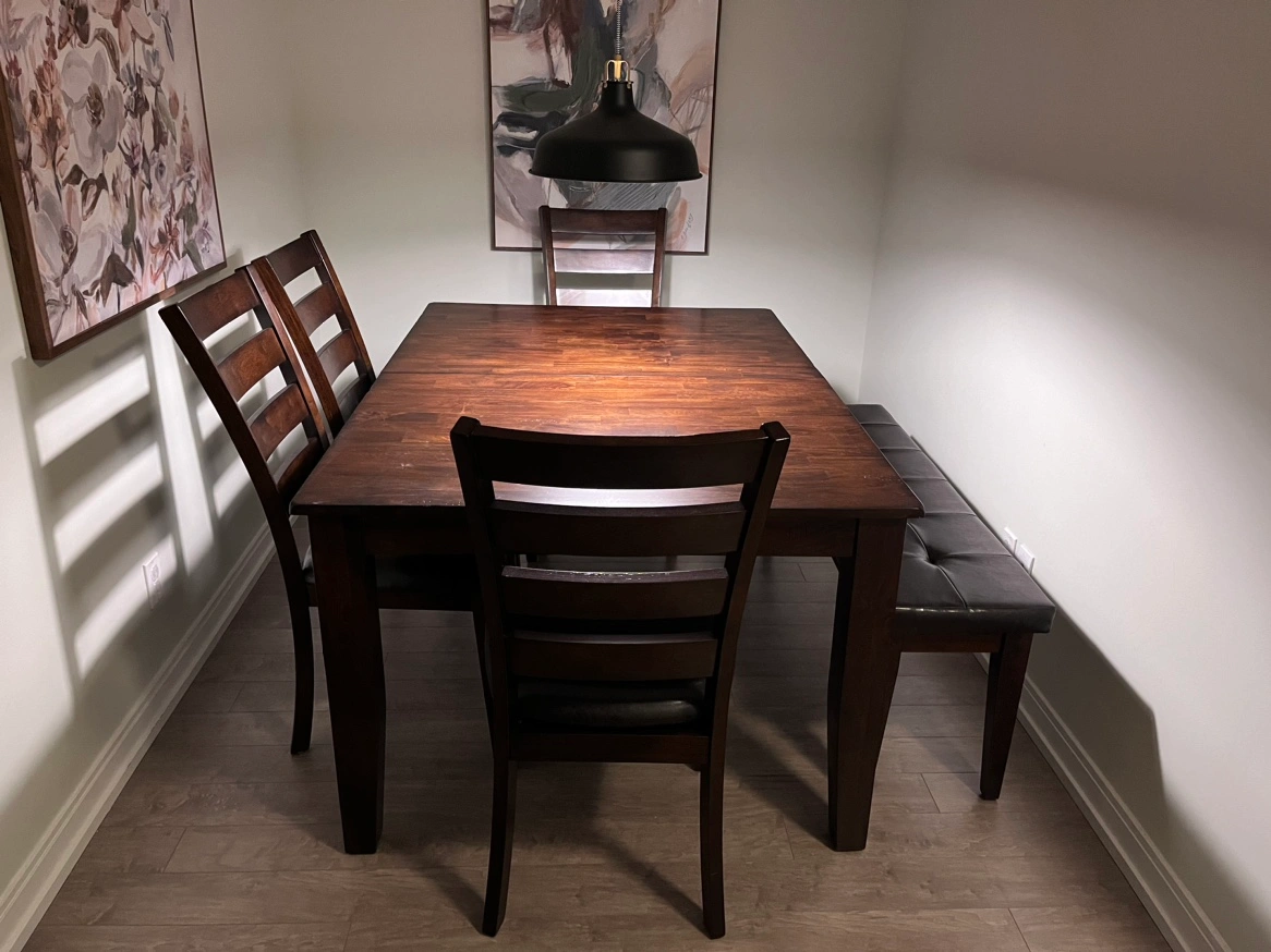 Buy & SellDining Table with Chairs(Extendible)Dining Table with Chairs(Extendible)$60042x60, 4 chairs and Bench Solid Mango, extendible, brand newConditionNewWHERE TO MEETCheck LocationView MapSELLERKevinAgincourt S727 reviews0 chats·0 favorites·29 viewsSEND CHAT TO SELLERHi Kevin! I’m interested in your listing.Hi Kevin! I’m interested in your listing.Get the Karrot app to chatSign In to chat