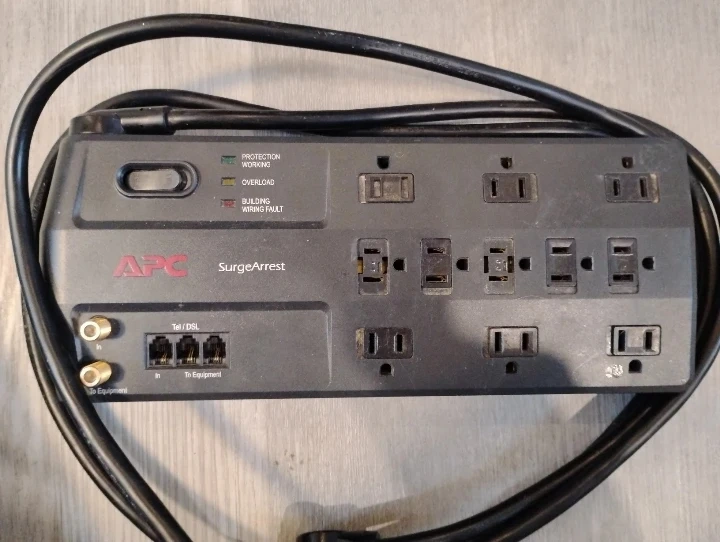 Selling an APC Surge Arrest Power Bar. Multi-purpose plug bar features protection against electro overload PLUS has Tel/DSL ports for maximum plug-in pleasure. Electrical ratings 120Vac, 15Amp, 50/60Hz. In perfect working condition. Inquire Within.