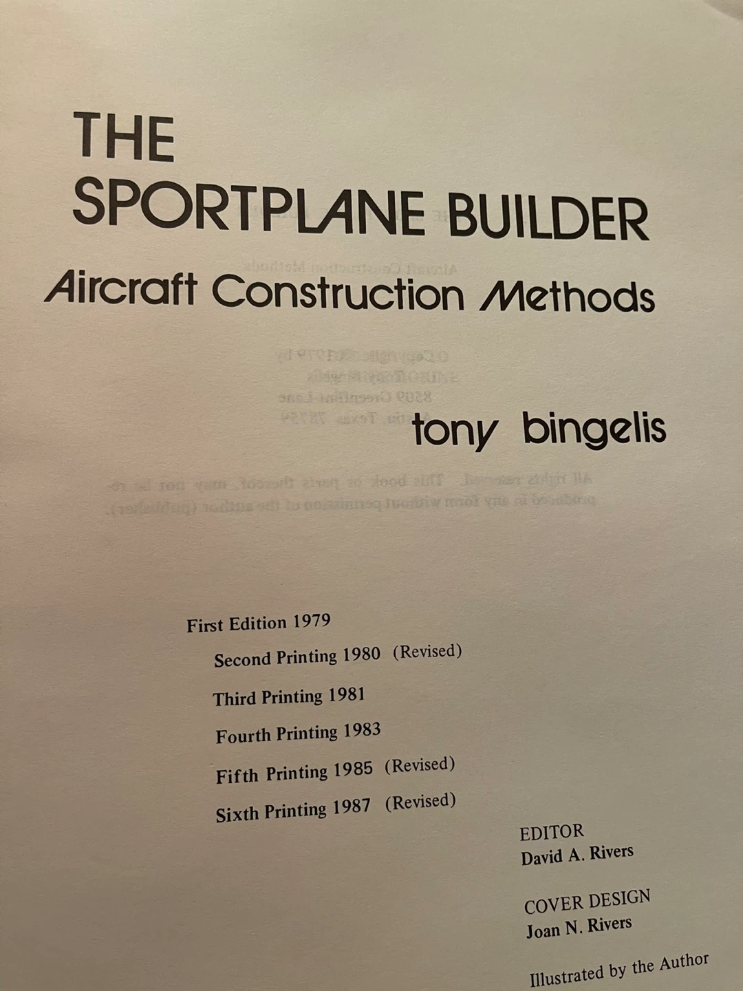 Selling "The Sportplane Builder: Aircraft Construction Methods" by Tony Bingelis. It provides detailed insights into aircraft construction methods. Perfect for aviation enthusiasts and builders. Cash only