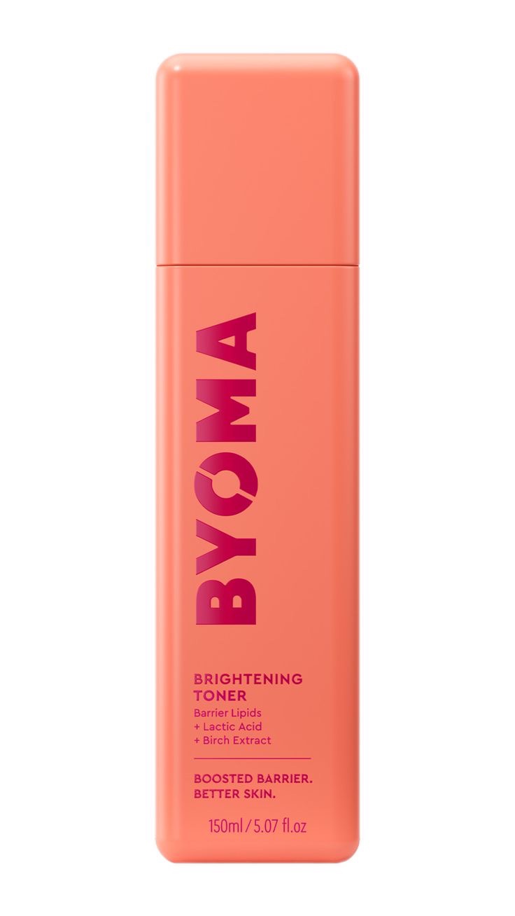 Byoma Brighten & Balance Toner. A highly concentrated, invigorating facial toner with key barrier lipids, lactic acid and birch extract.