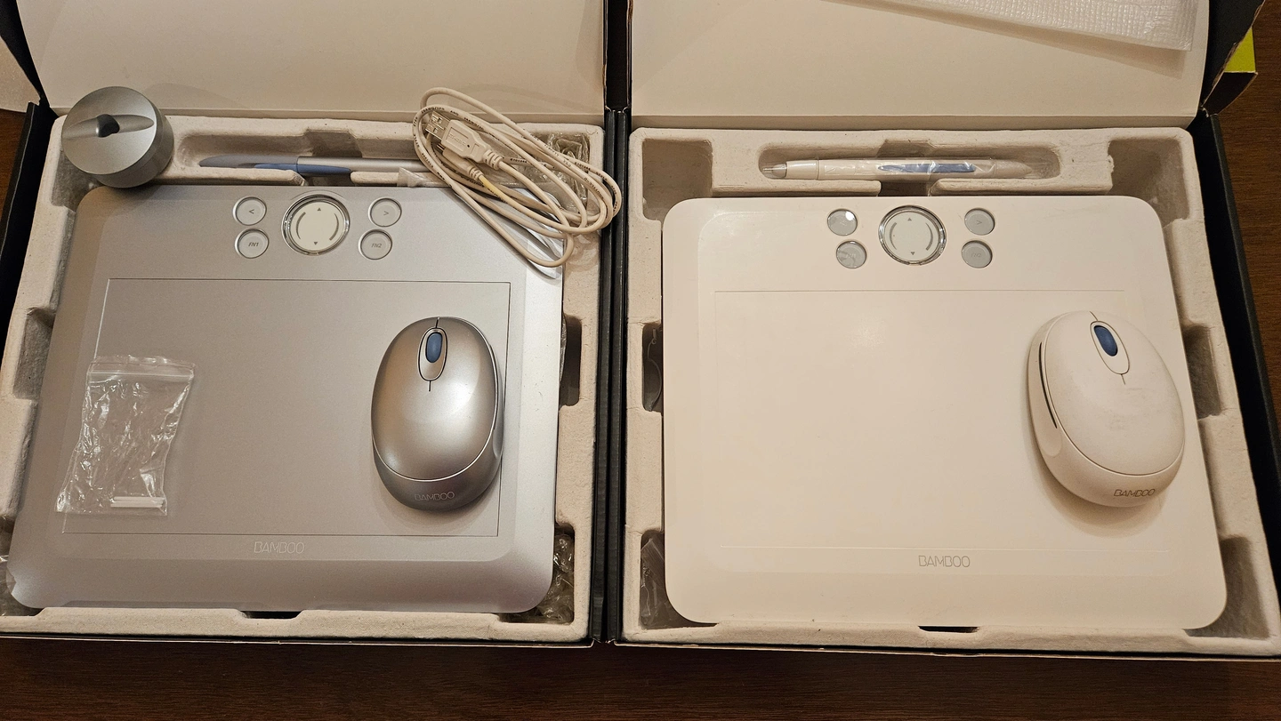 Selling a Wacom Bamboo Fun CTE-650 (Medium size) graphics tablet in silver or white. It comes with the original box and all included components; tablet, stylus, mouse, cable, holder and spare tips. This medium size is perfect for digital art and design projects compared to the smaller travel model.