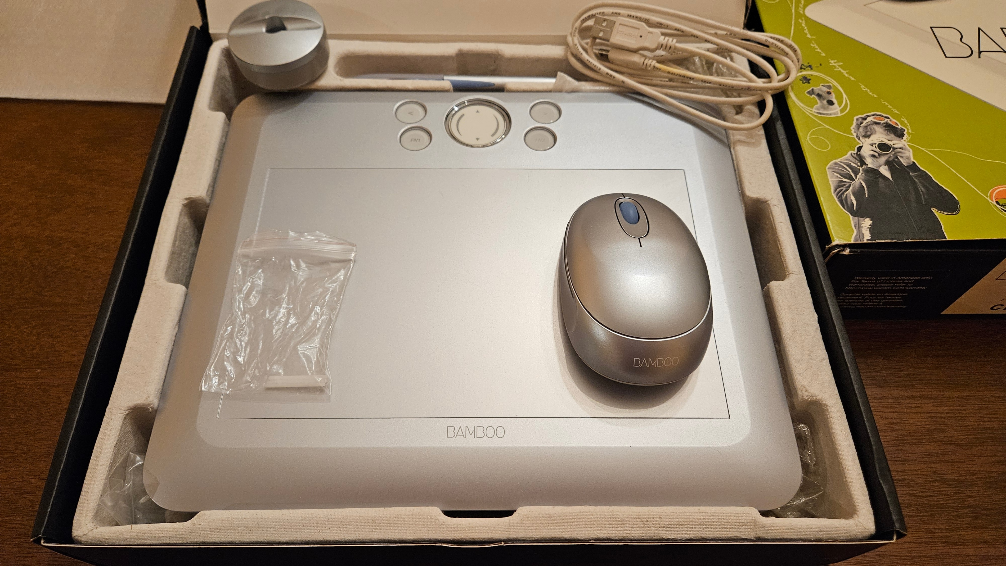 Selling a Wacom Bamboo Fun CTE-650 (Medium size) graphics tablet in silver or white. It comes with the original box and all included components; tablet, stylus, mouse, cable, holder and spare tips. This medium size is perfect for digital art and design projects compared to the smaller travel model.