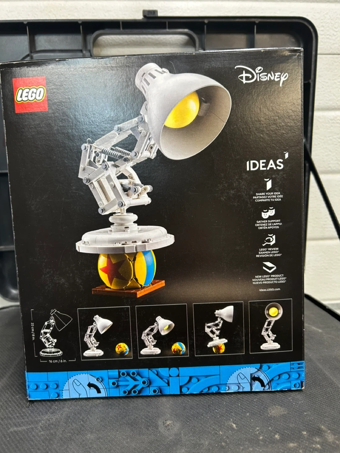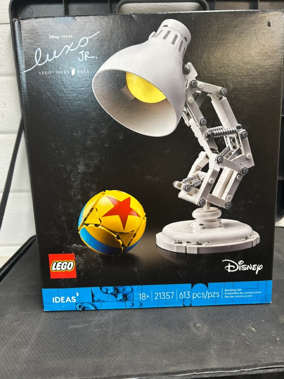 LEGO Ideas set featuring the iconic Luxo Jr. lamp and ball. This building set includes 613 pieces and is recommended for ages 18+. It's a great display piece for fans of Pixar animation.