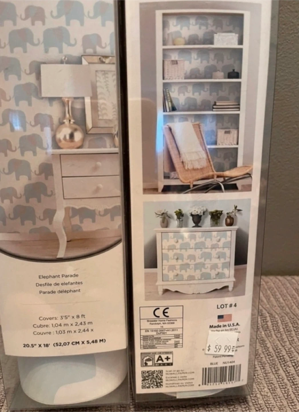 This NuWallpaper Elephant Parade wallpaper roll is a great way to add a whimsical touch to any room. Two rolls, new.