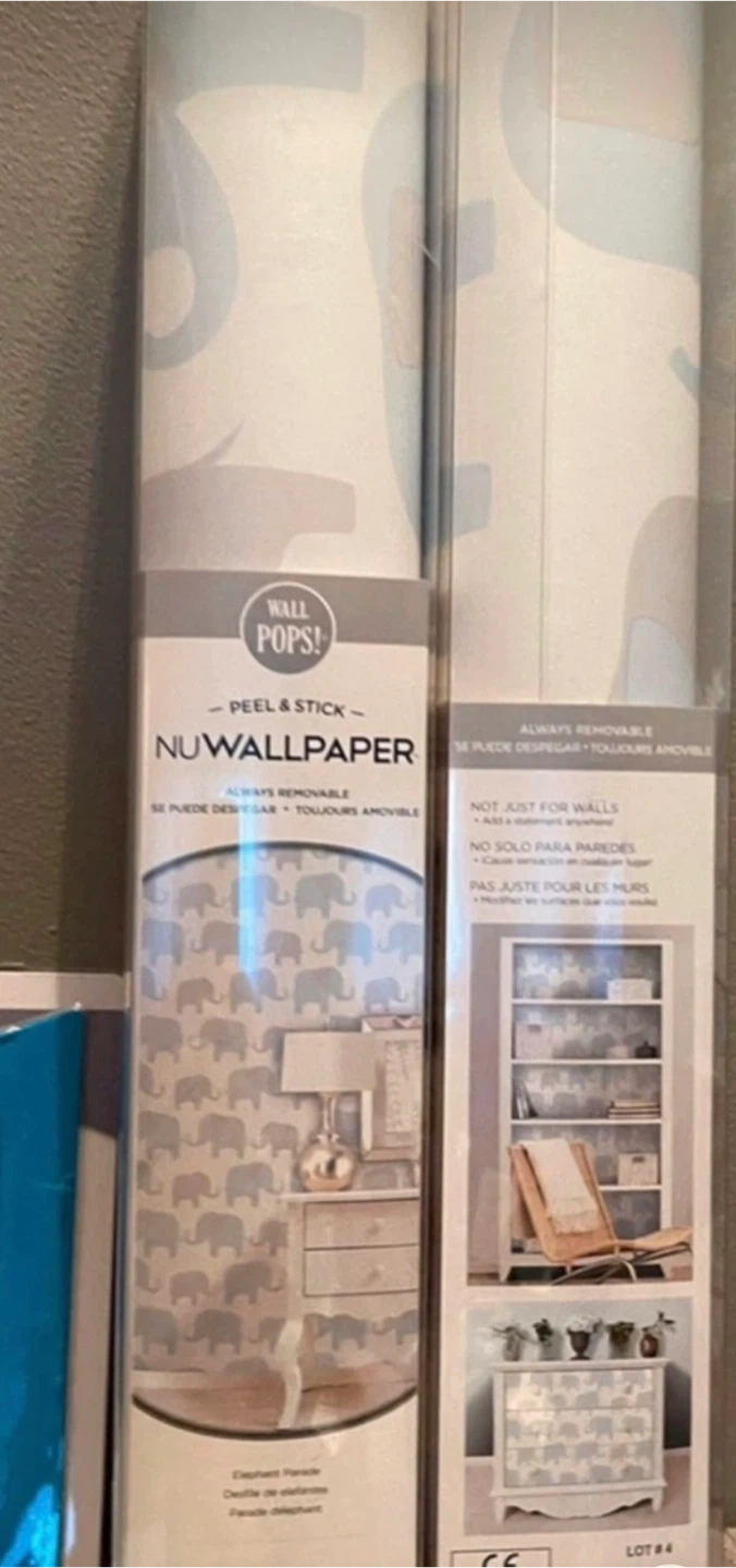 This NuWallpaper Elephant Parade wallpaper roll is a great way to add a whimsical touch to any room. Two rolls, new.
