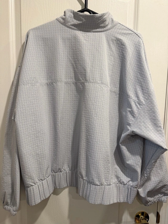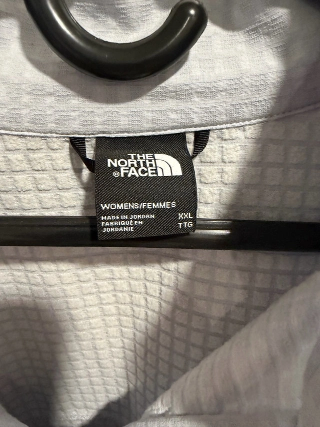 Elevate your athleisure wardrobe with this The North Face women's light blue pullover in size XXL. This stylish and comfortable pullover is perfect for layering or wearing on its own. The fabric has a subtle texture that adds a touch of sophistication.