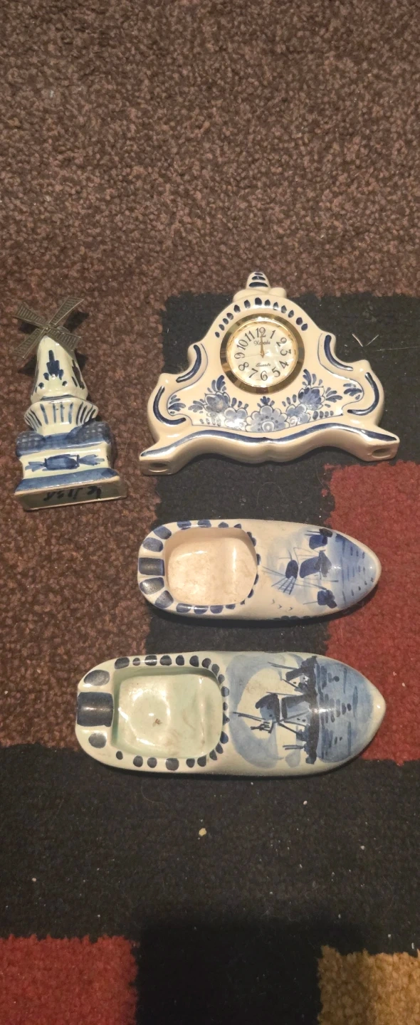 4 pieces of Delft Blue. I'm pretty sure the larger blue clog was an ashtray.