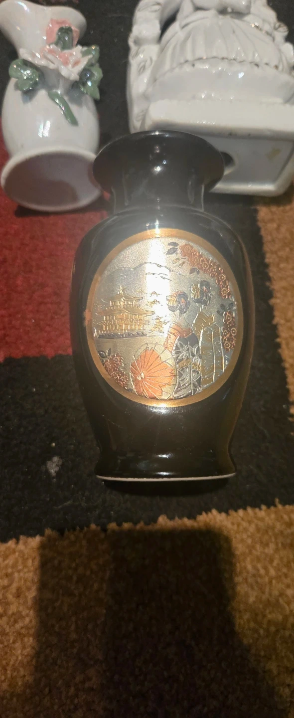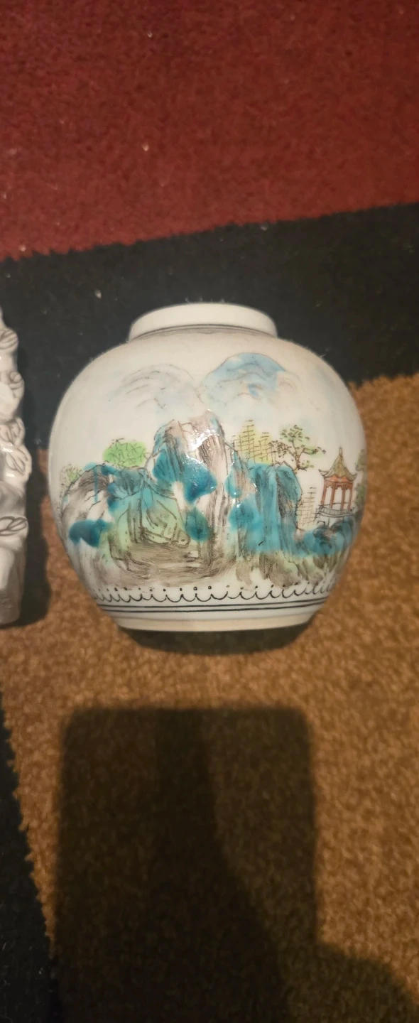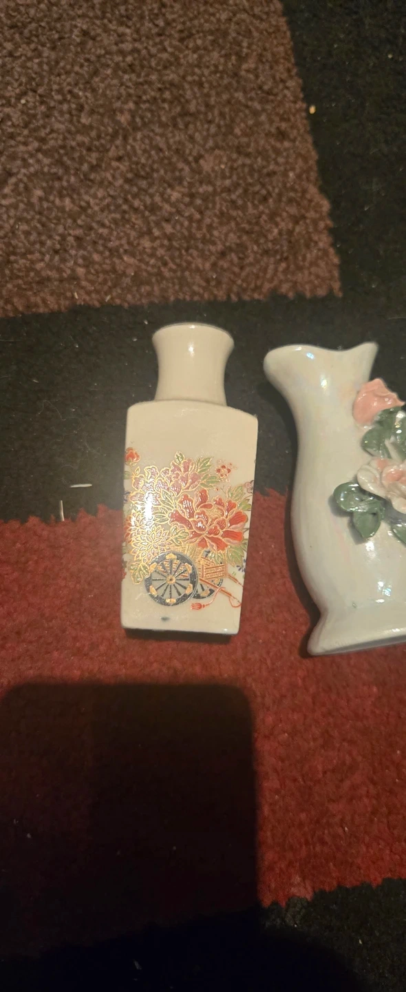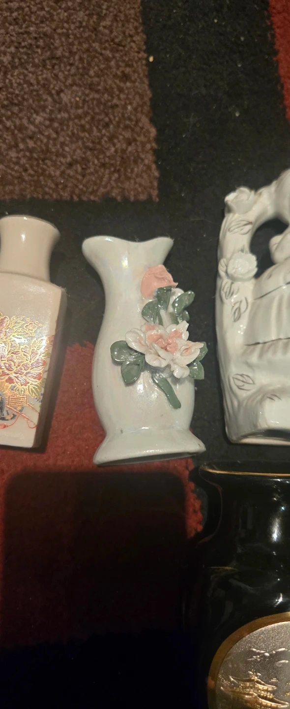 The Asian pottery is all hand painted, except for the black one. I think that came from one of those Ali express sites, but it's lumped in with everything on the floating shelves. The one with 3d floral design has a cool pearlescent glaze. Let me know if you have any questions and I'll do my best to answer.