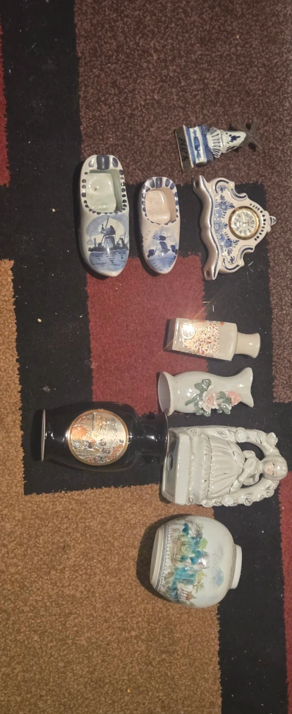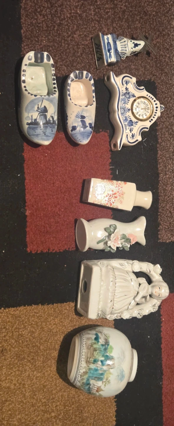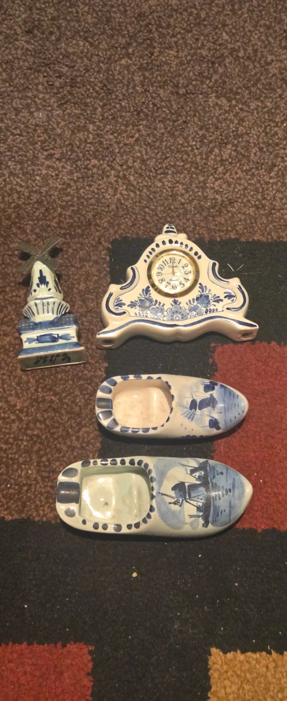 4 pieces of Delft Blue. I'm pretty sure the larger blue clog was an ashtray.