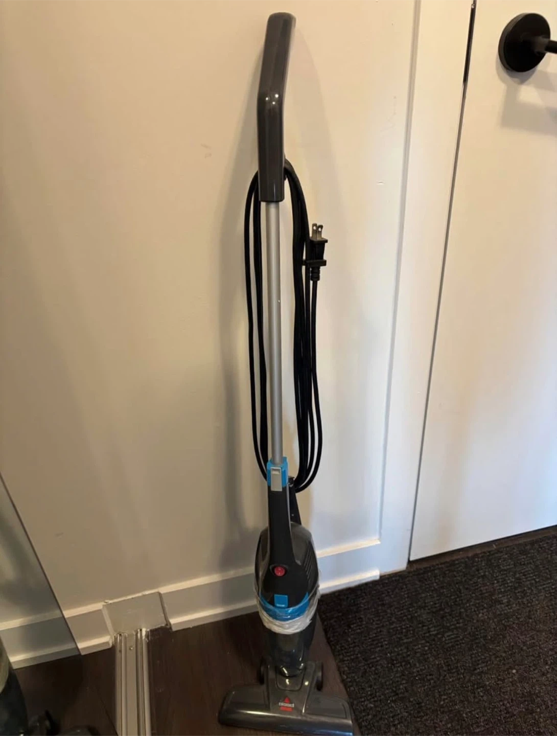Bissell stick vacuum cleaner for easy floor cleaning. Corded electric power. Lightweight and compact design. Works perfectly fine except the release clip to hold the vacuum is broken so I taped it but functions properly.