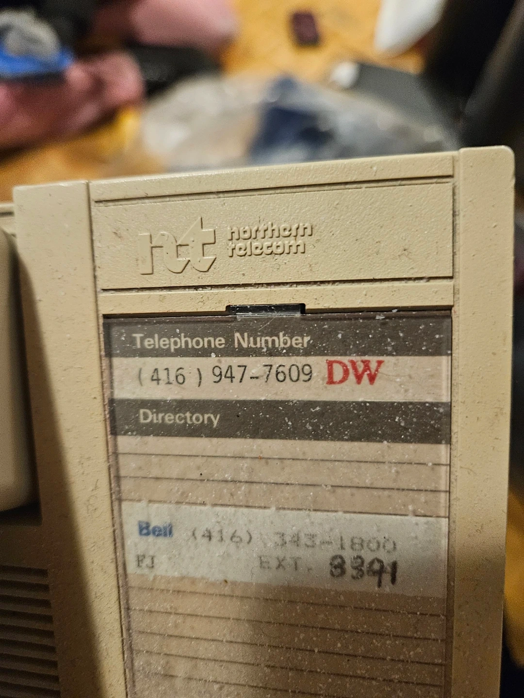 This is a Vintage beige Northern Telecom telephone. It has a built-in directory slot and a keypad for dialing. Includes 'L' and 'R' buttons for Link and Release.