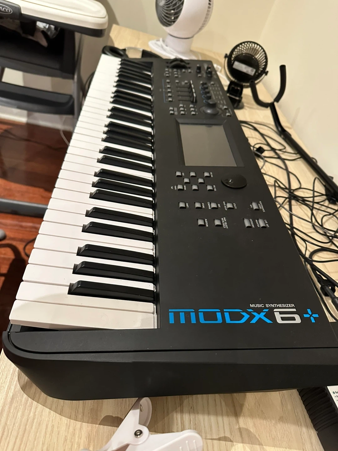 Yamaha MODX6+ 61-key synthesizer. This music synthesizer has a compact and lightweight design. It's ideal for musicians needing a portable yet powerful instrument. Includes original box and power adapter. for pick up , cash only