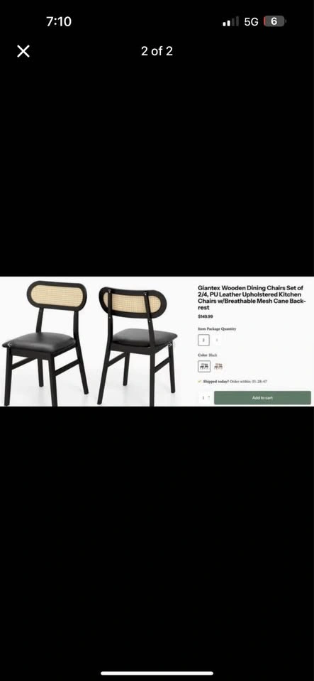 Elevate your dining space with this stylish set of 2 dining chairs featuring a sleek black wooden frame, breathable cane mesh backrest, and PU leather upholstered seat for comfort and durability. Perfect for kitchen, dining, or even as accent chairs in your home.