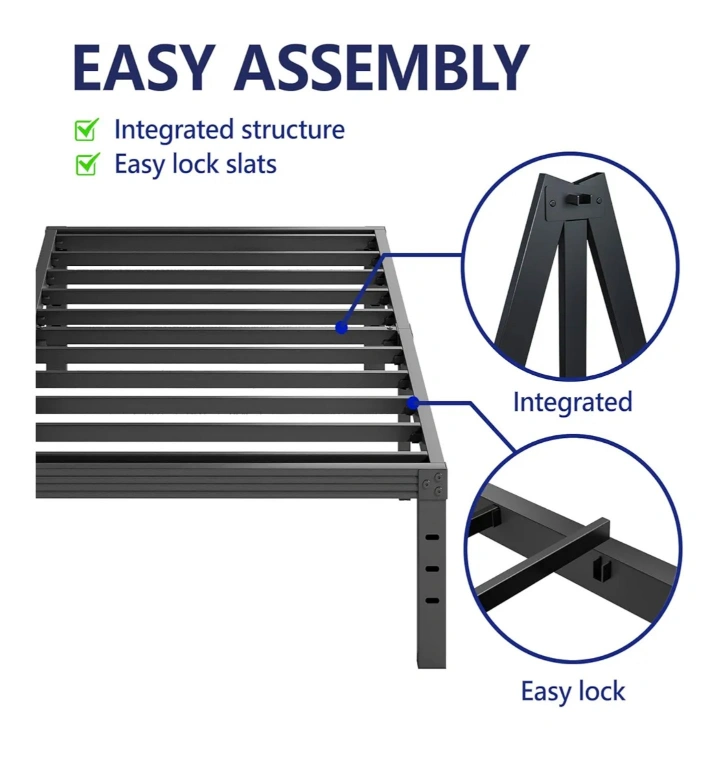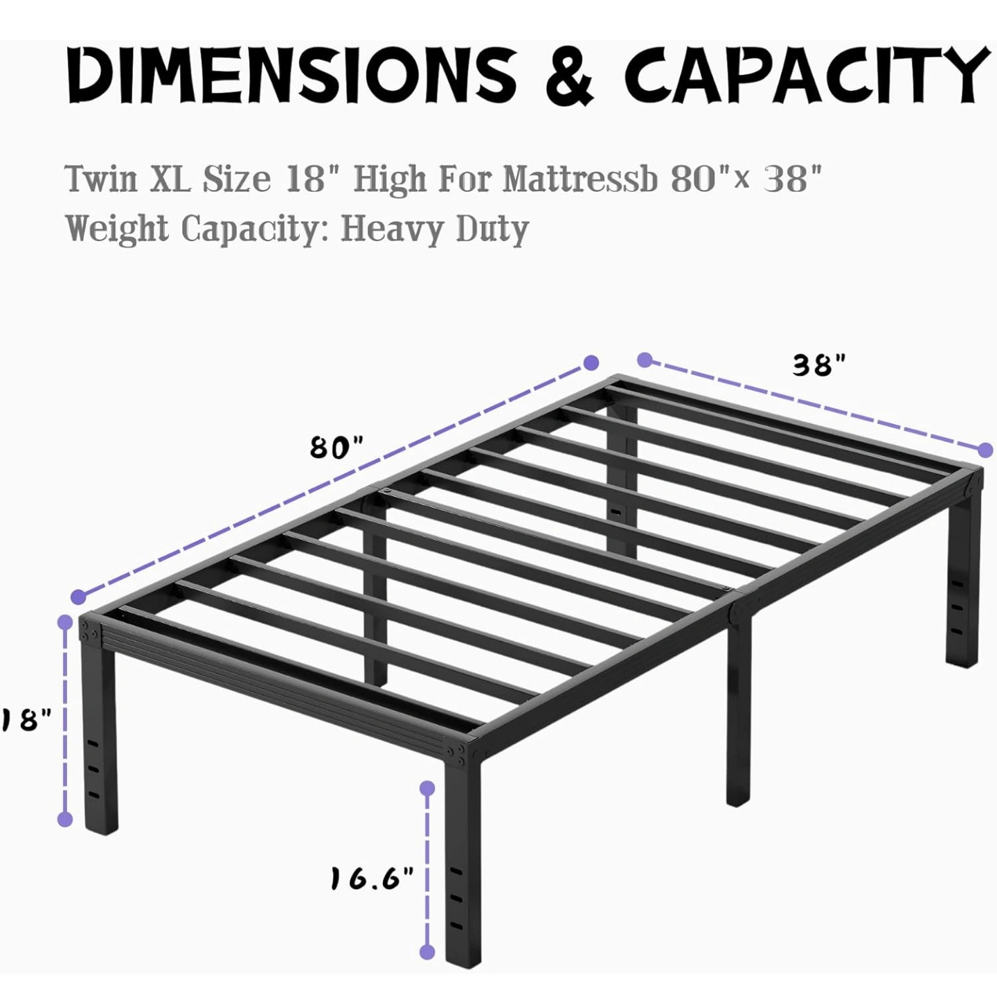 Looking to upgrade your bedroom? I'm selling an unopened box brand new Twin XL metal bed frame. It measures 80" x 38" and offers ample under-bed storage space with a 16.62" clearance. It's designed for easy assembly with an integrated structure and easy lock slats