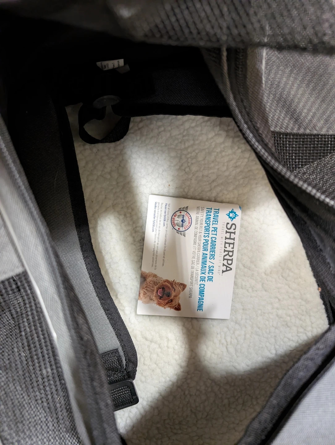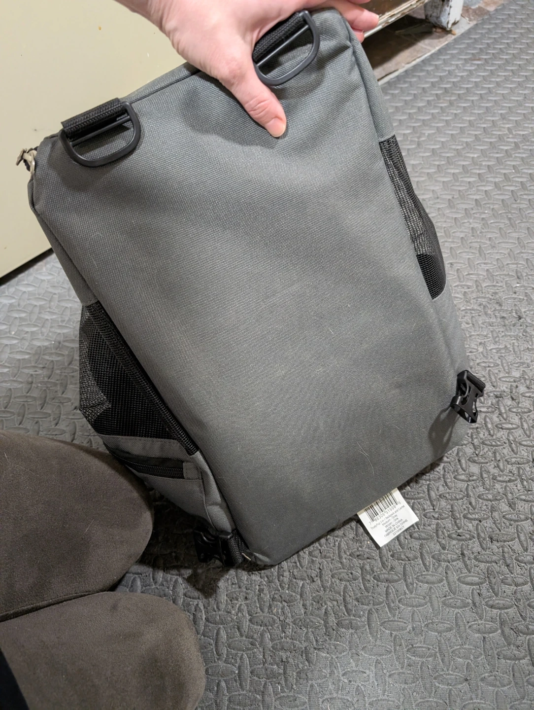 For small pets. Never used- brand new! Comes with arms, can turn into backpack.